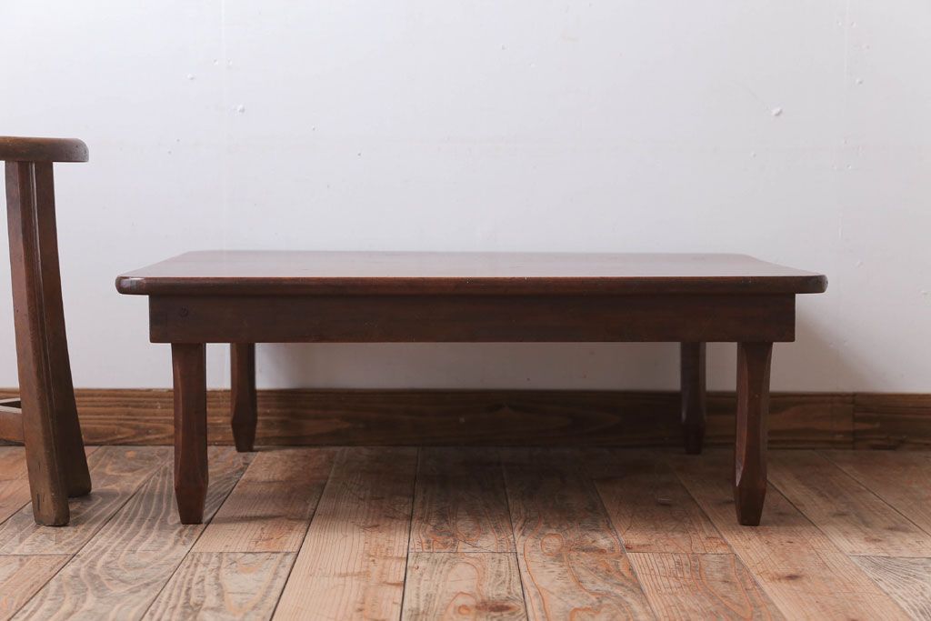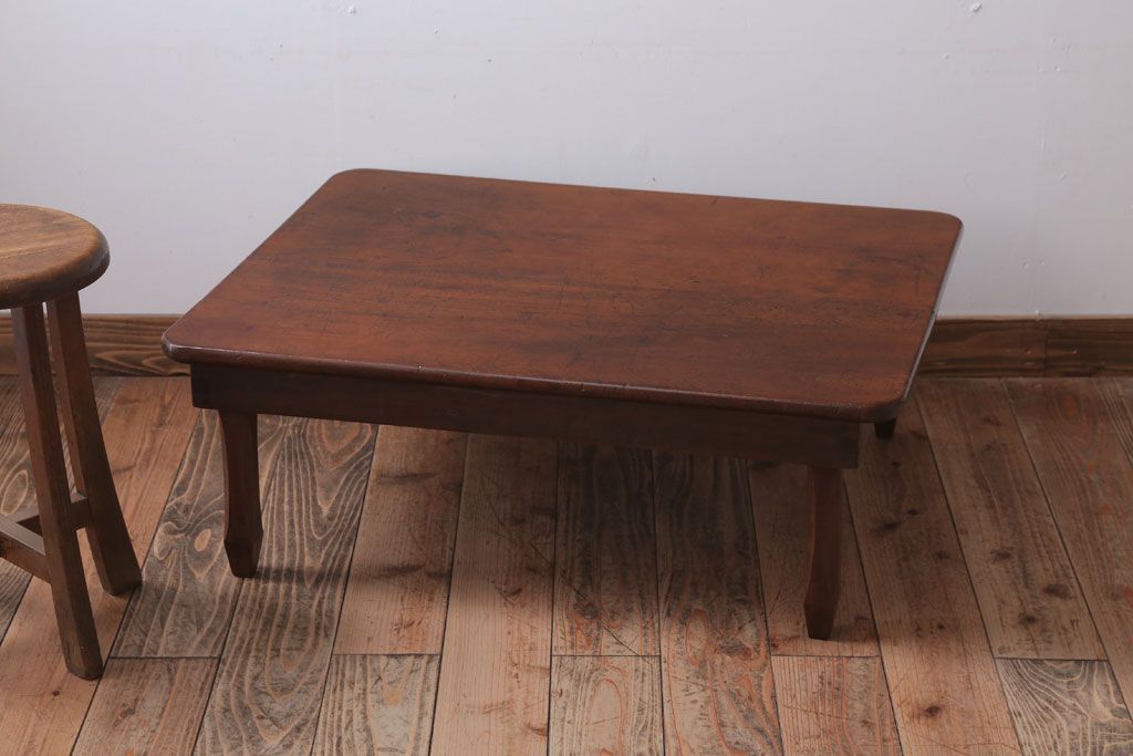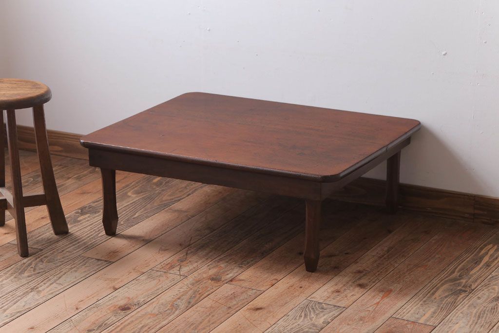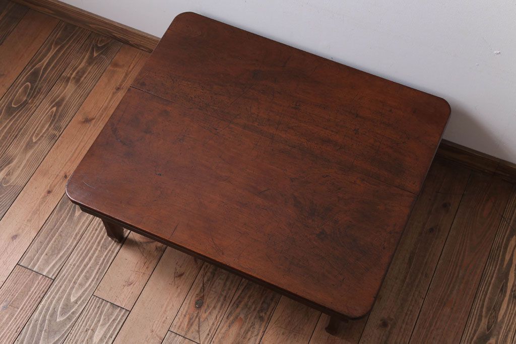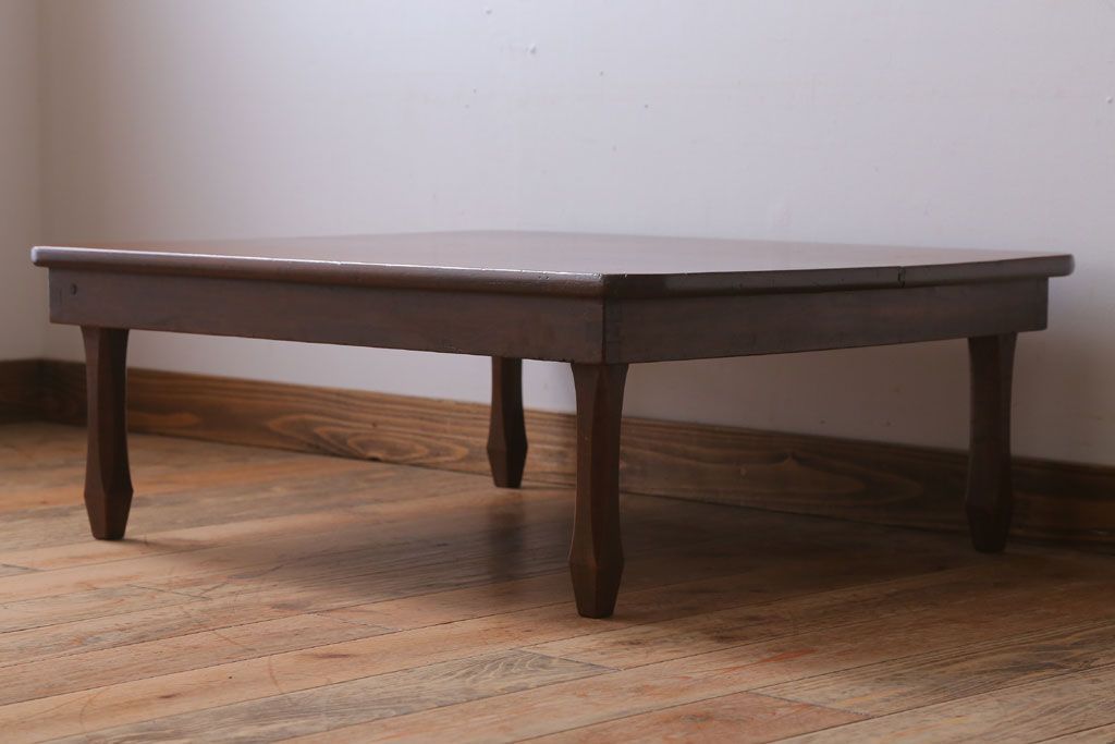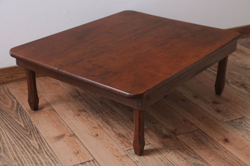 アンティーク家具 アンティーク 脚のデザインがおしゃれな古い木製の角ちゃぶ台
