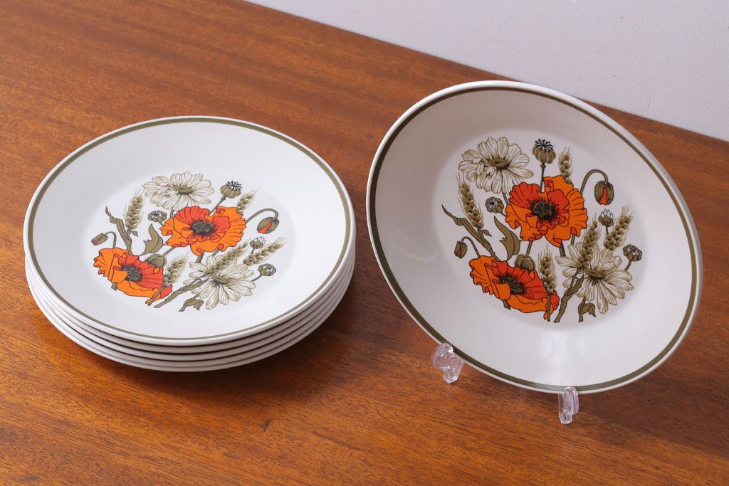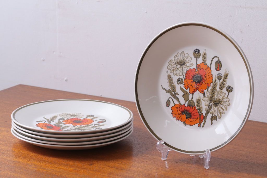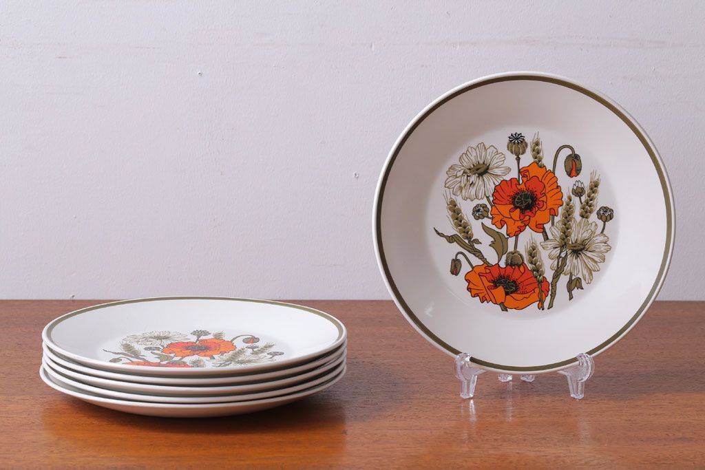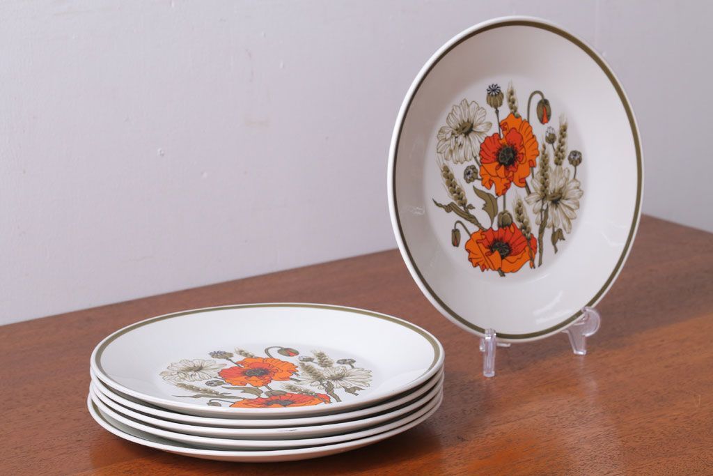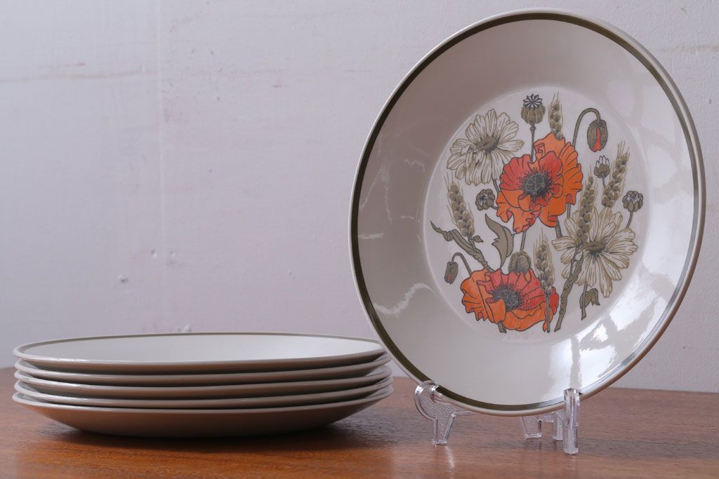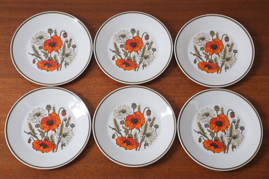 アンティーク雑貨 イギリスビンテージ J&G MEAKIN(ミーキン) POPPY(ポピー)シリーズ ディナープレート6枚(洋食器・皿)