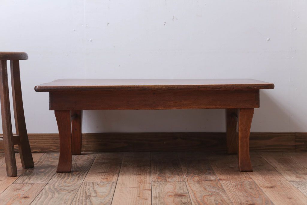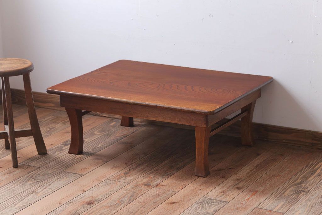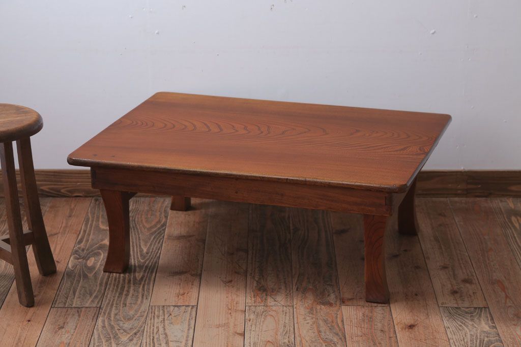アンティーク家具 アンティーク 総欅材!天板一枚板の角ちゃぶ台