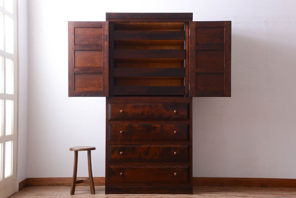 中古 松本民芸家具 衣装盆付き洋服ダンス(着物箪笥、衣装箪笥、和たんす)