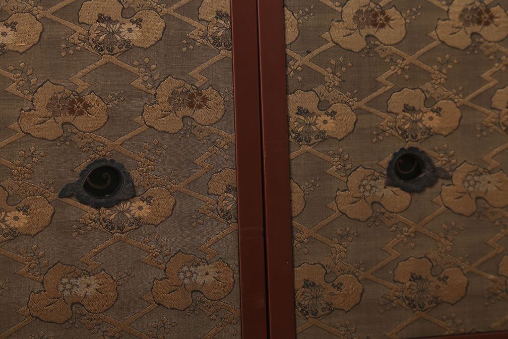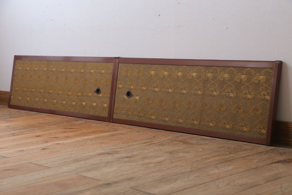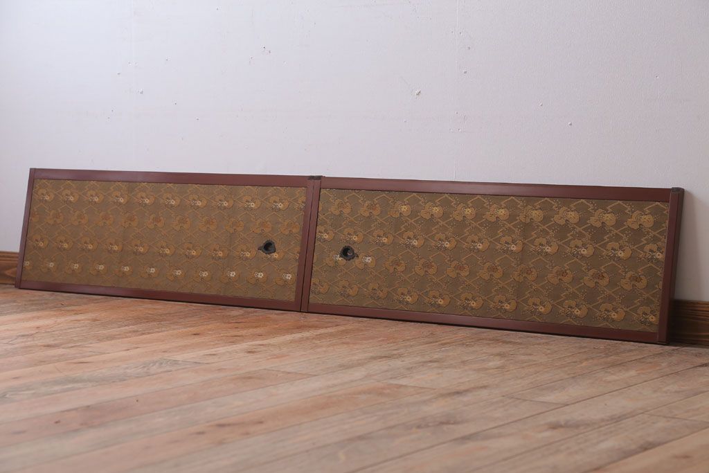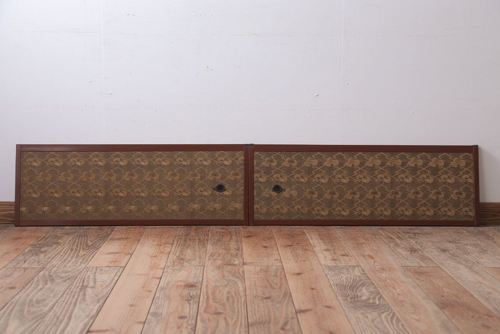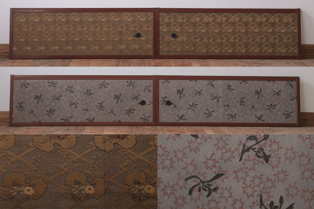 アンティーク 裏面拓本染め白石和紙張り!高級緞子引き戸2枚セット