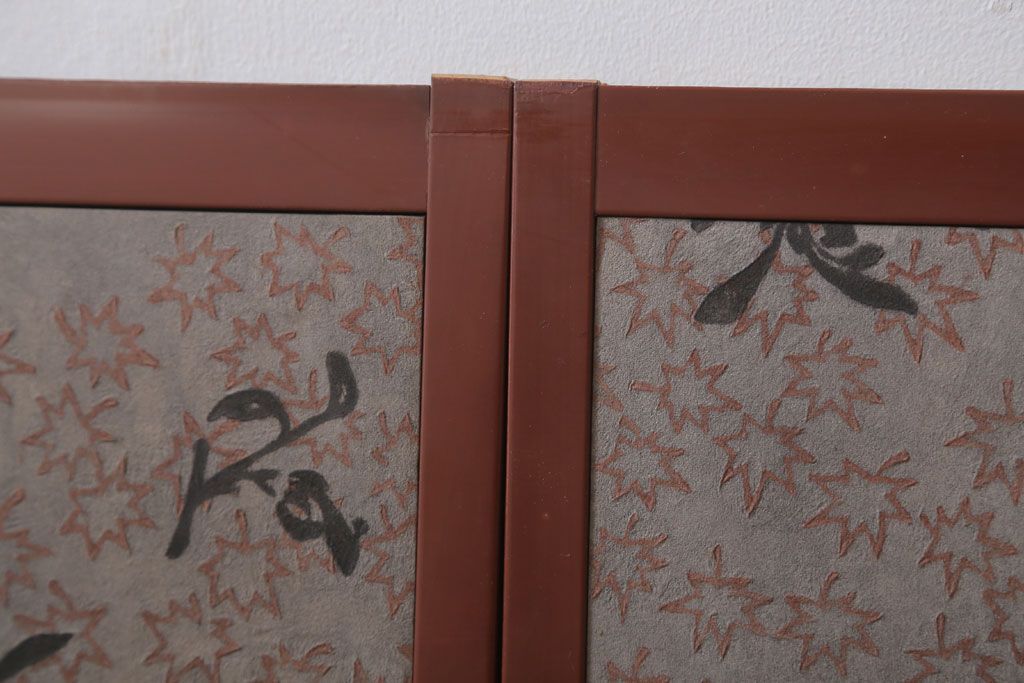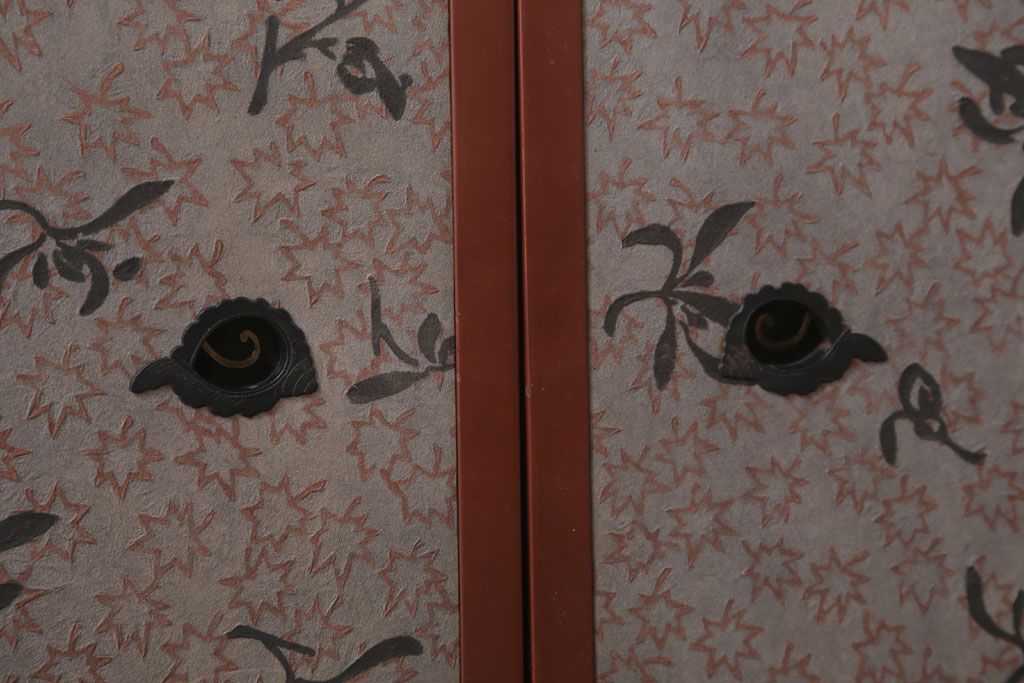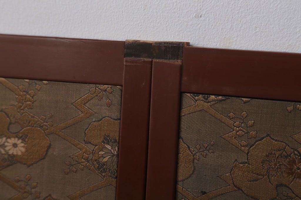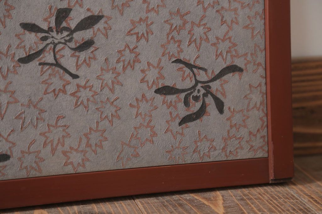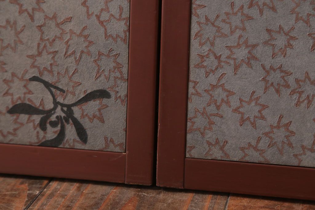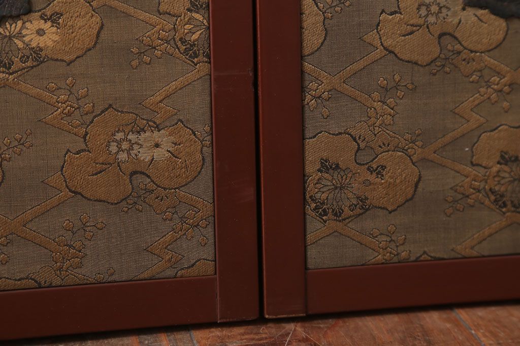 アンティーク 裏面拓本染め白石和紙張り!高級緞子引き戸2枚セット