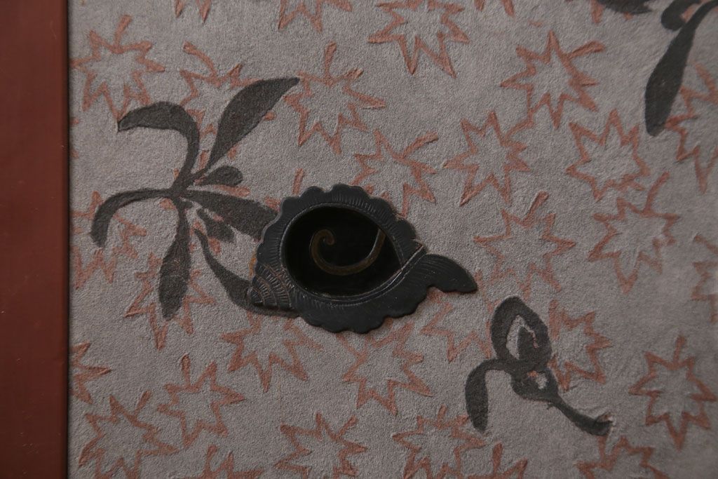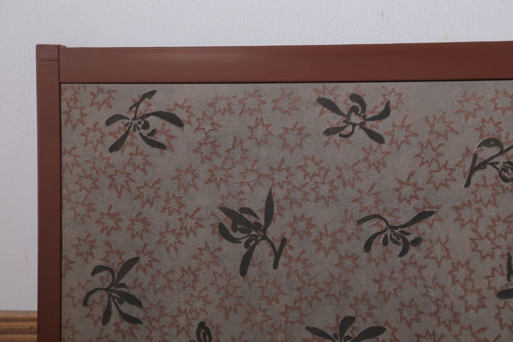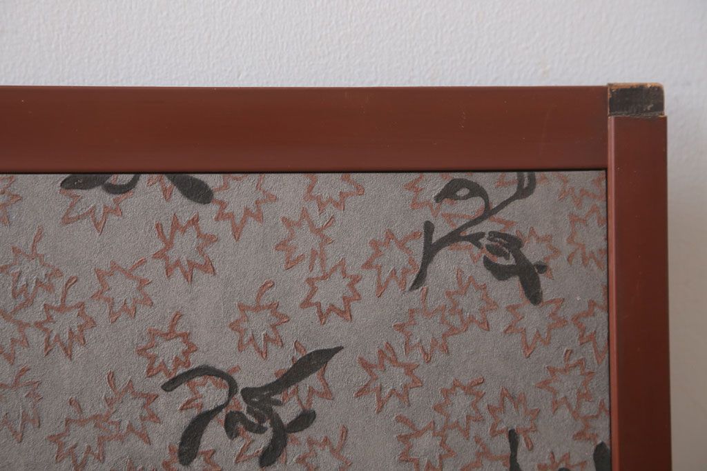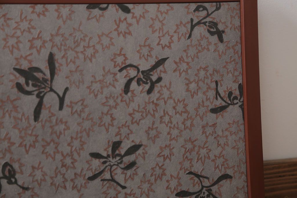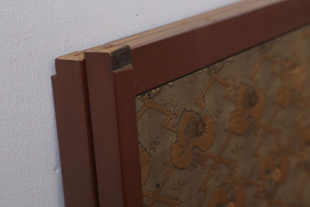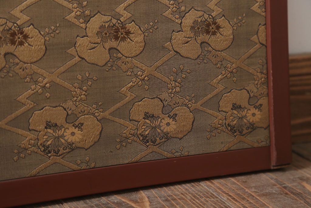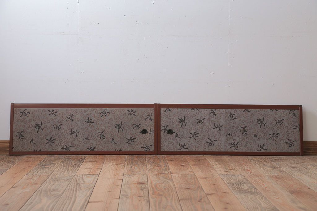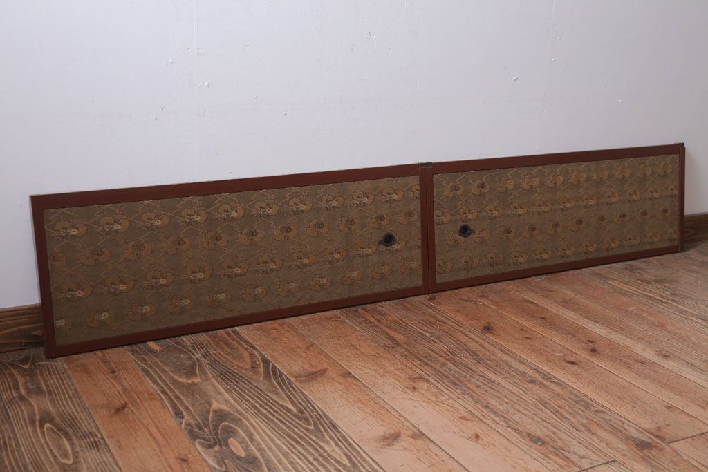 アンティーク 裏面拓本染め白石和紙張り!高級緞子引き戸2枚セットです。