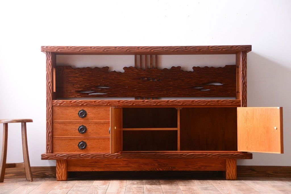 民芸家具 高級品!屋久杉材のサイドボード(飾り棚)(定価約30万円)