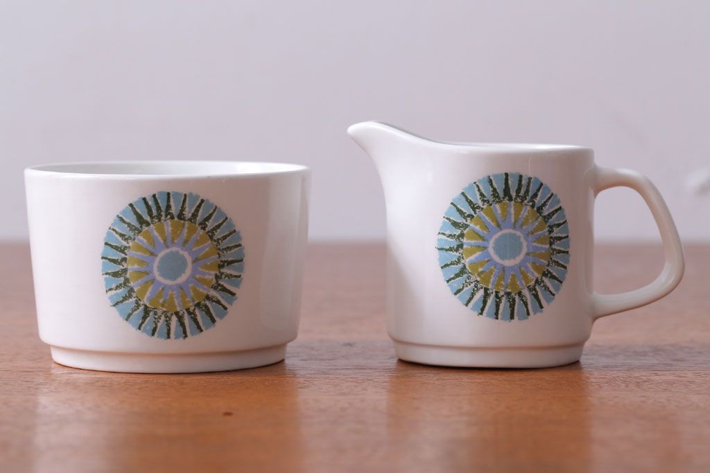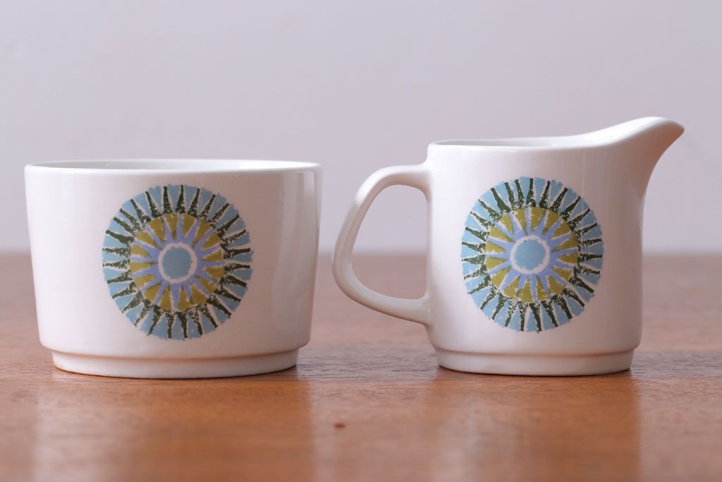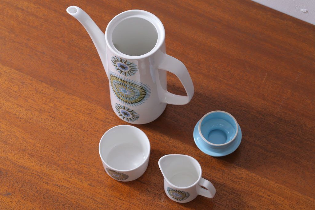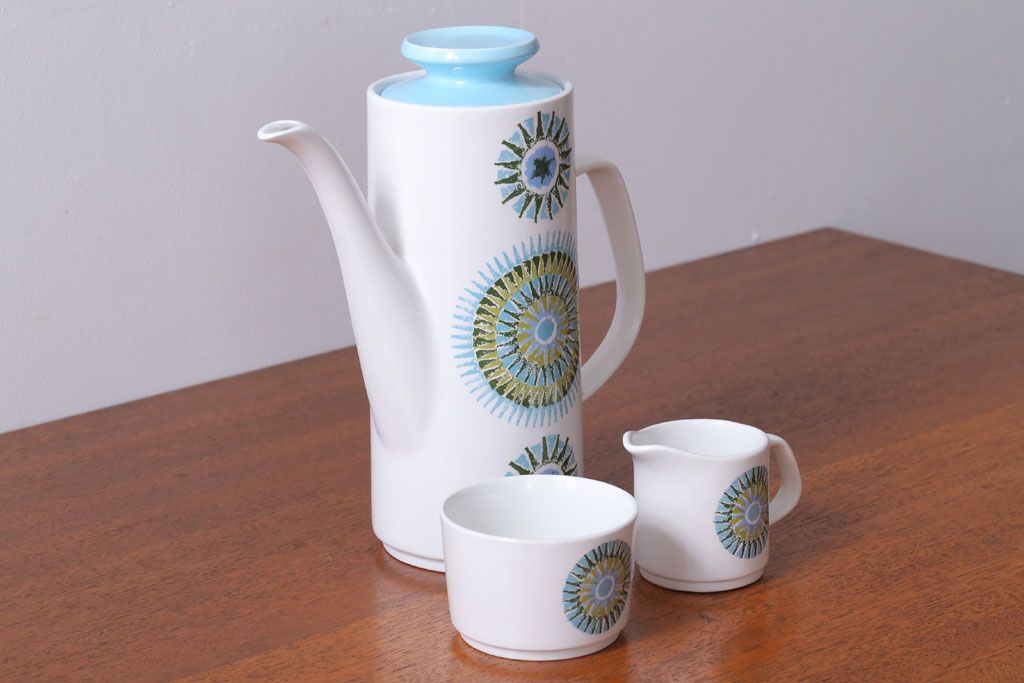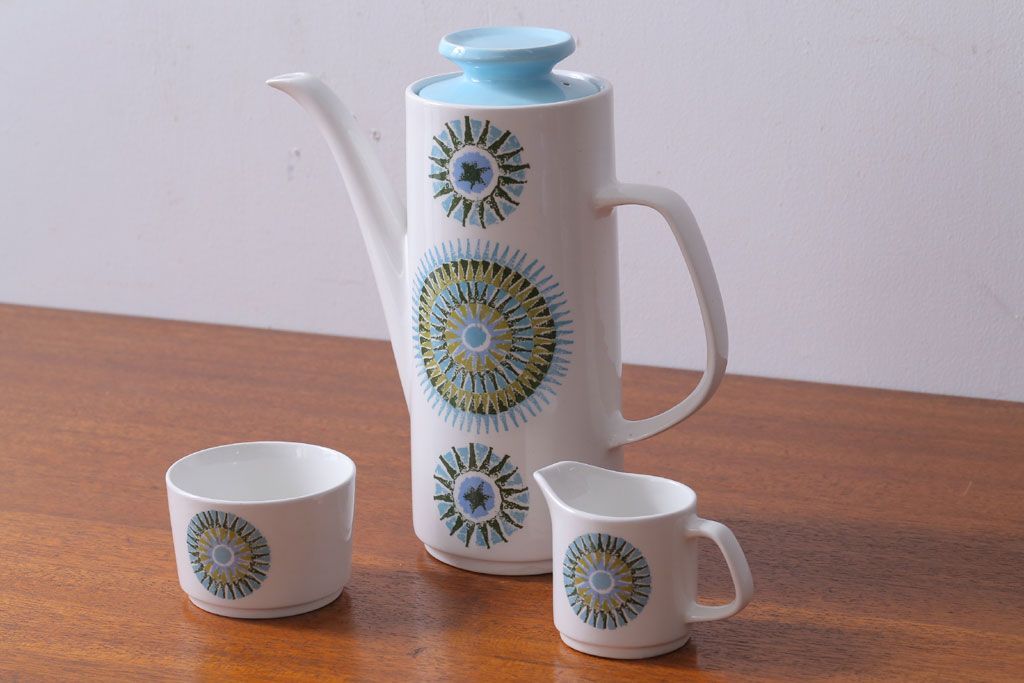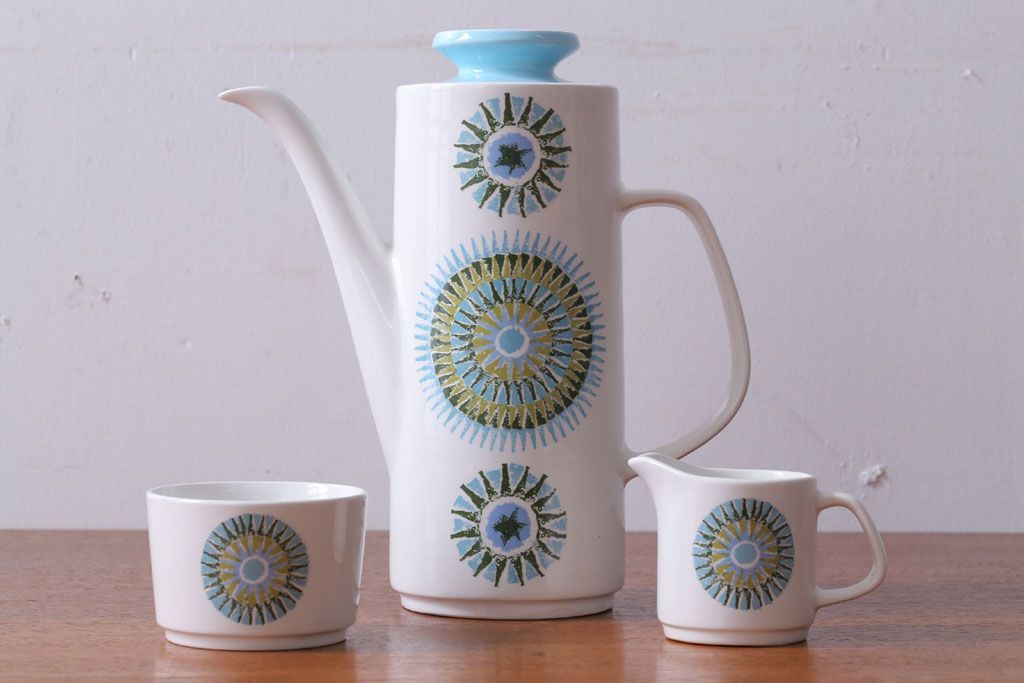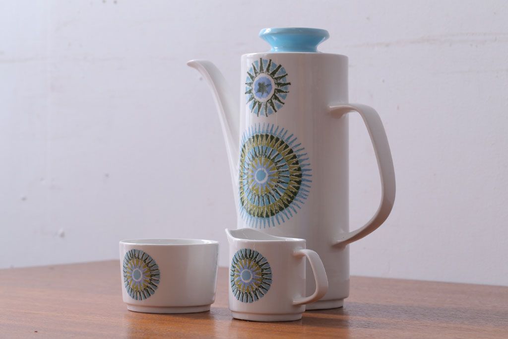 ラフジュ工房> 洋食器・キッチン用品> ポット・シュガーポット・クリーマー > イギリスビンテージ J&G MEAKIN(ミーキン) AZTEC(アステカ)シリーズ ポット、ミルク、シュガー3点セット(洋食器)