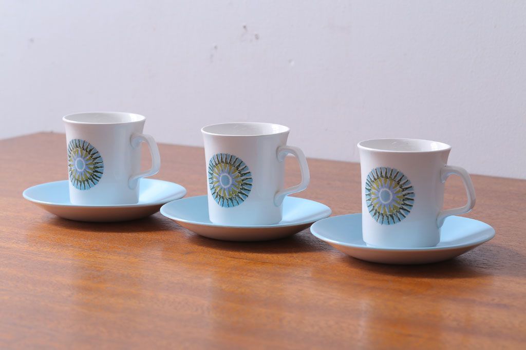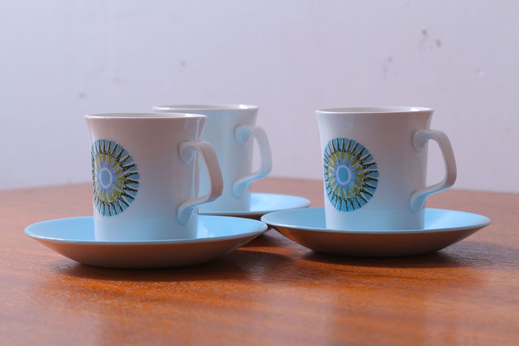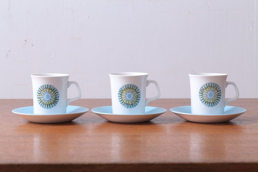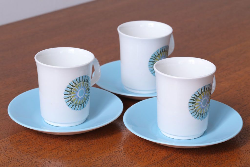 イギリスビンテージ J&G MEAKIN(ミーキン) AZTEC(アステカ)シリーズ カップ&ソーサー3客セット(洋食器)