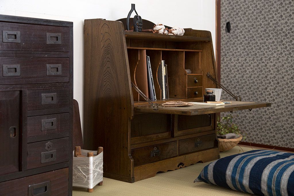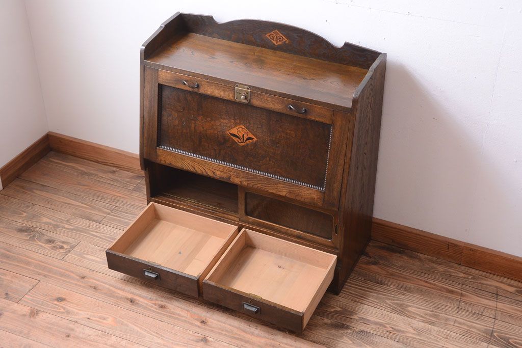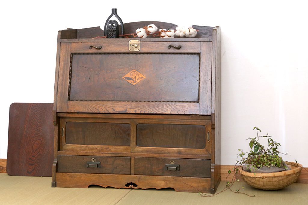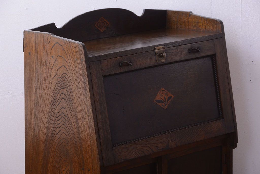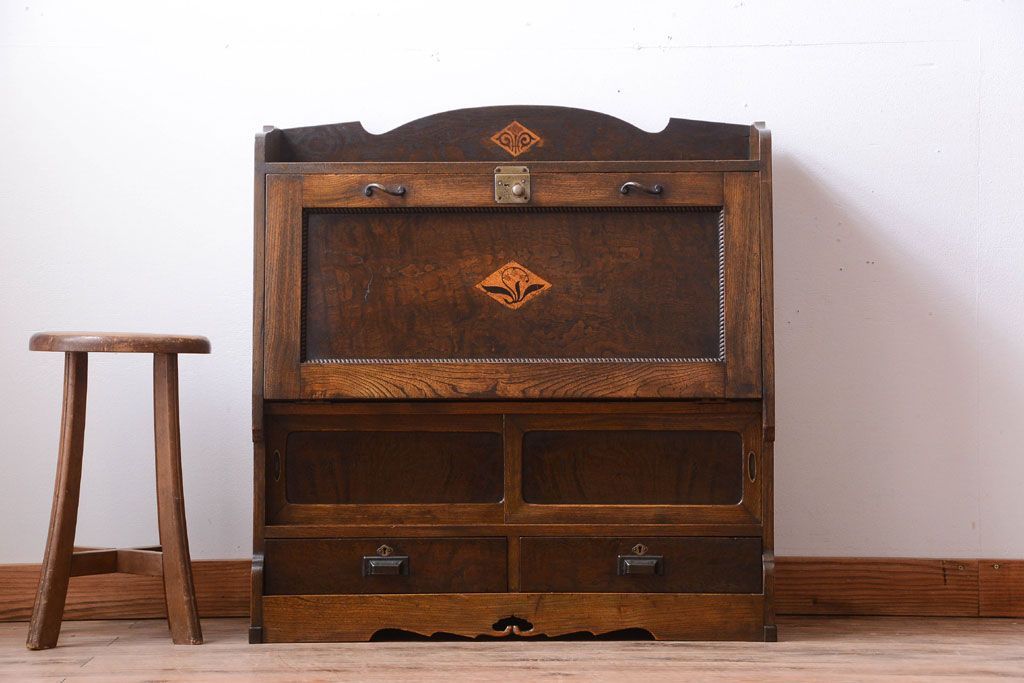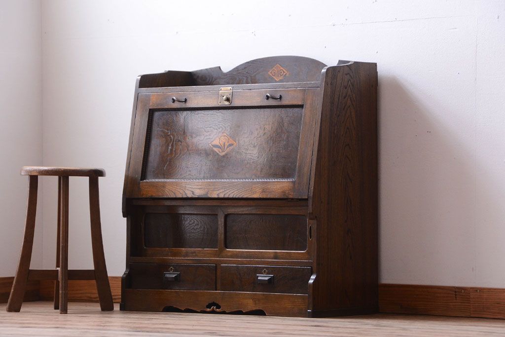 ラフジュ工房> デスク> ワークデスク > アンティーク家具 和製アンティーク 象嵌入り!古い木製の上質なライティングビューロー