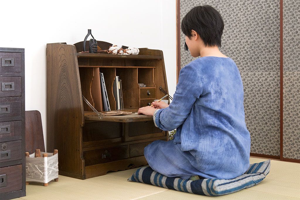 ラフジュ工房> デスク> 文机・座机 > アンティーク家具 和製アンティーク 象嵌入り!古い木製の上質なライティングビューロー