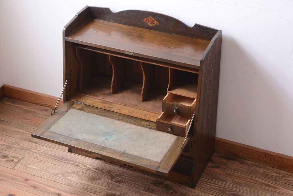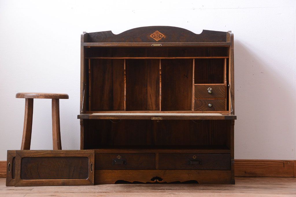 アンティーク家具 和製アンティーク 象嵌入り!古い木製の上質なライティングビューロー