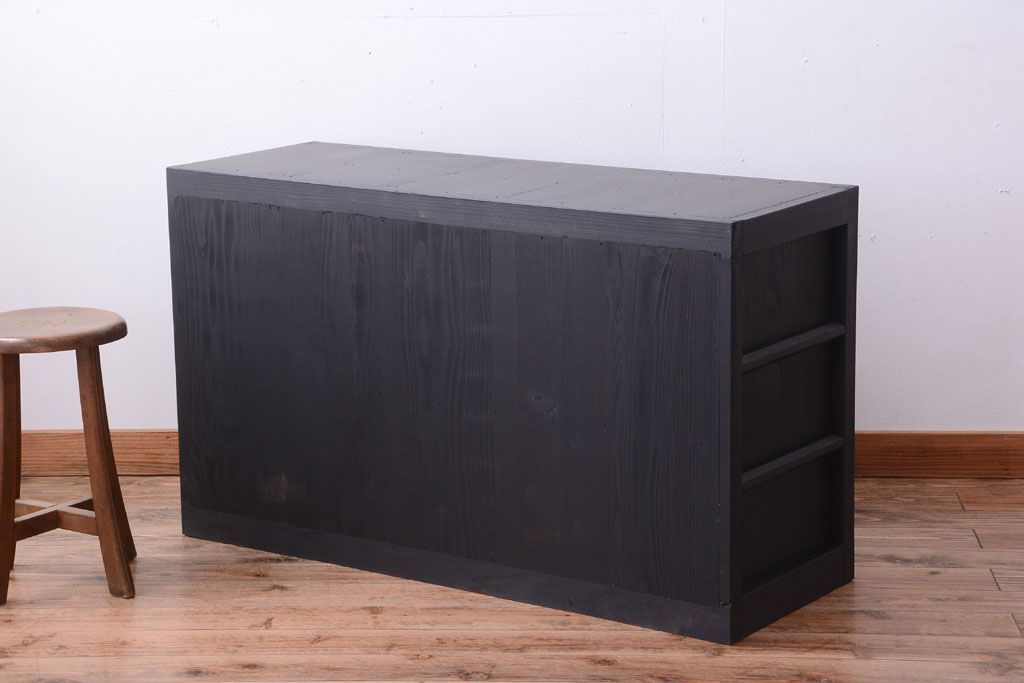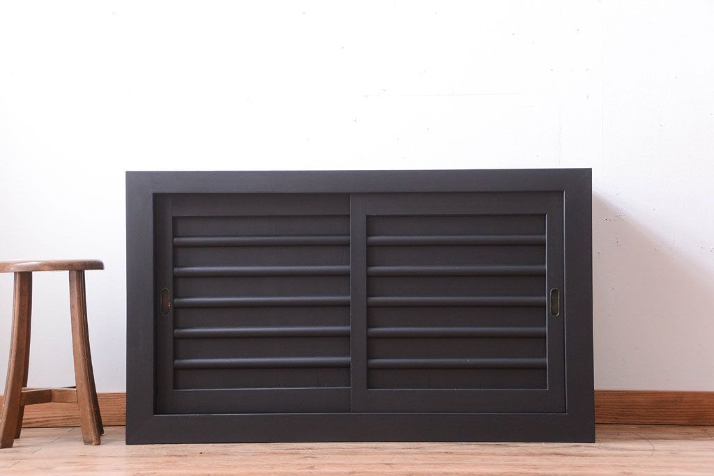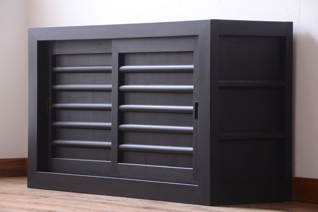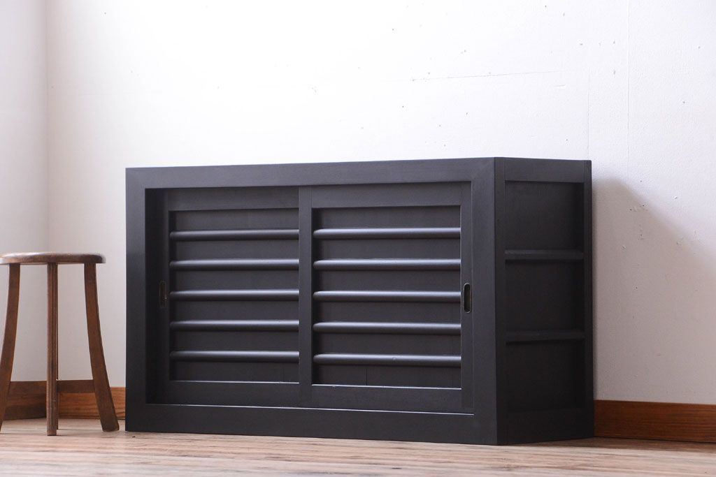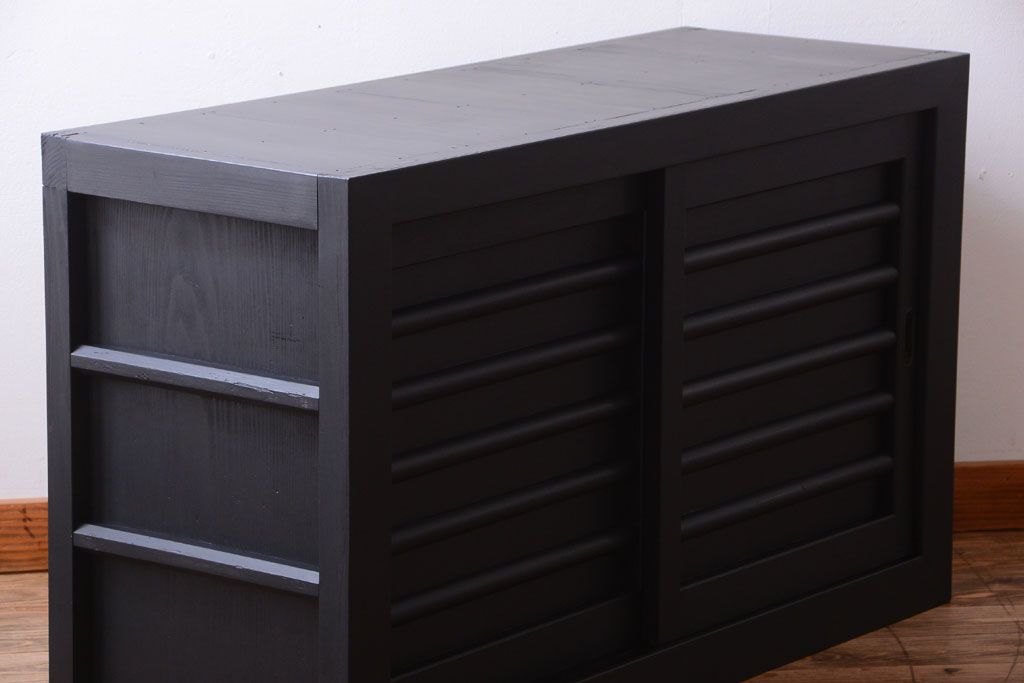 和箪笥 > アンティーク家具 アンティーク 四尺 和モダン 艶消しブラック塗装!横桟引き戸の水屋箪笥ローボード(テレビボード)