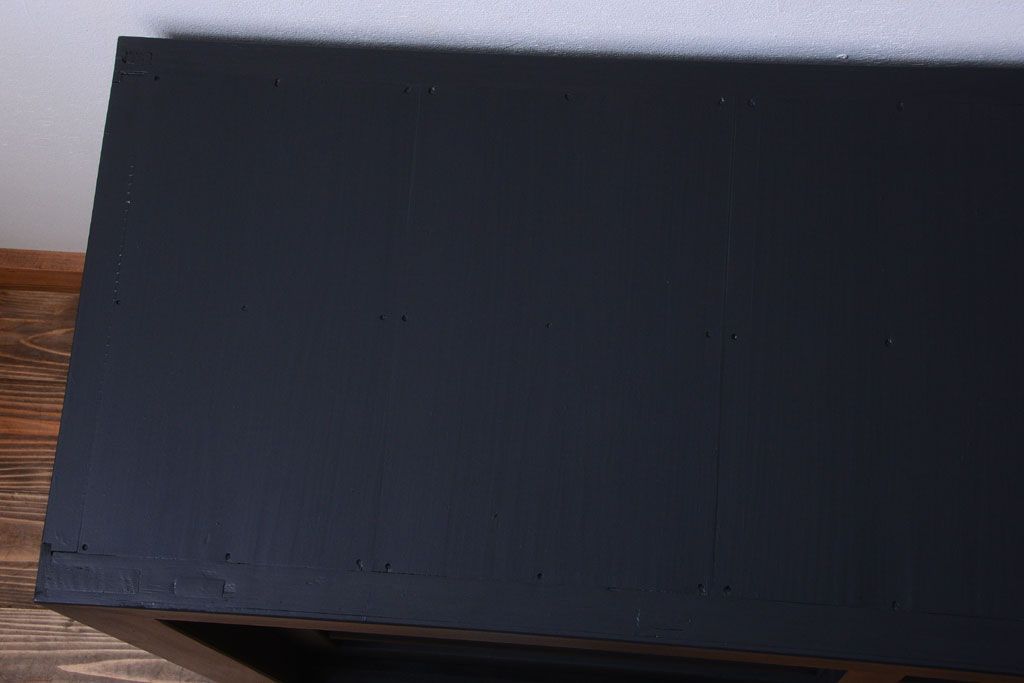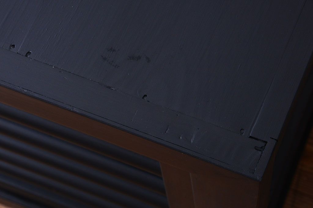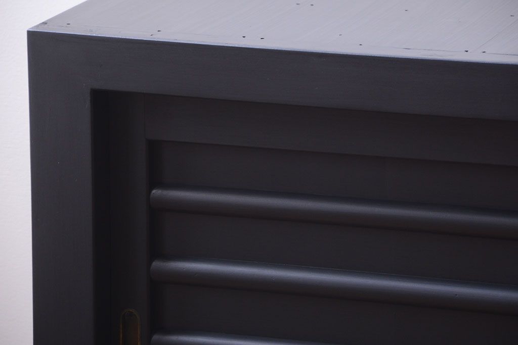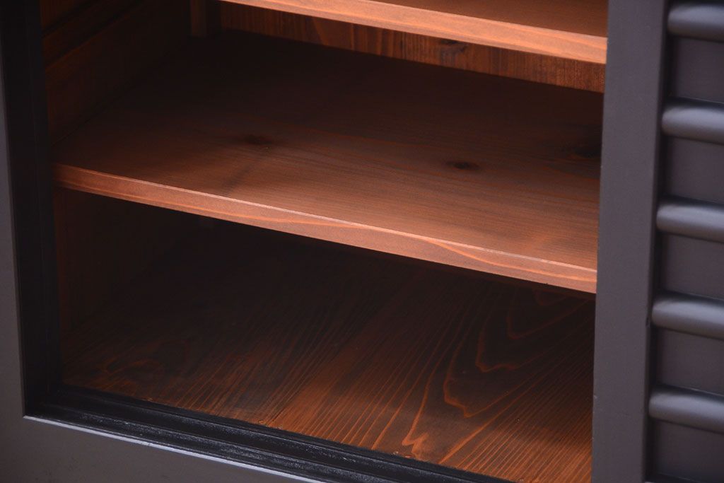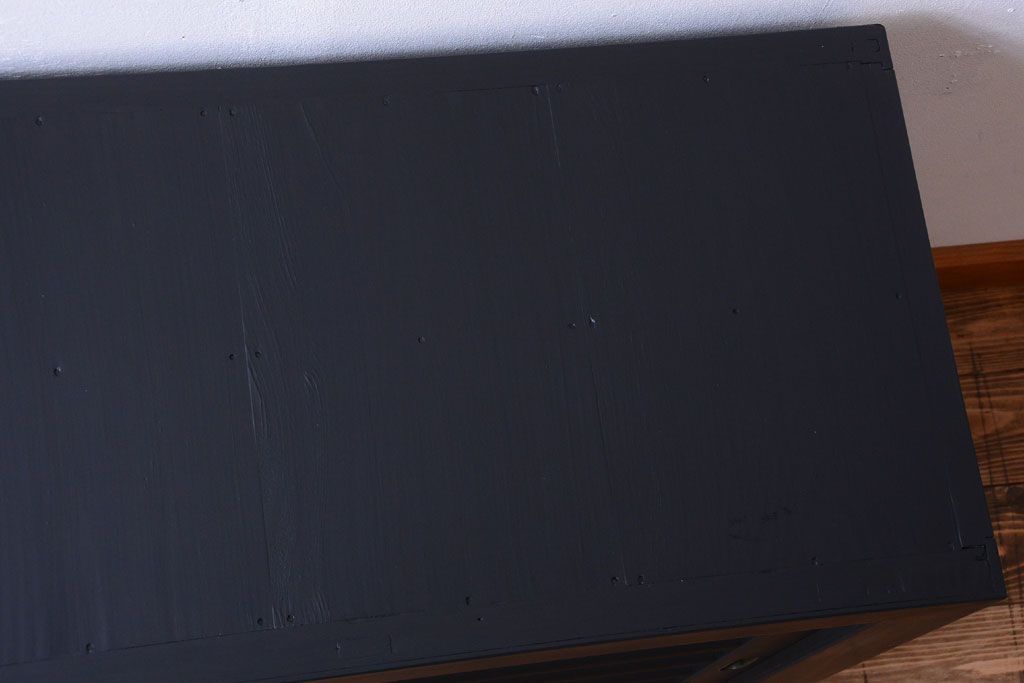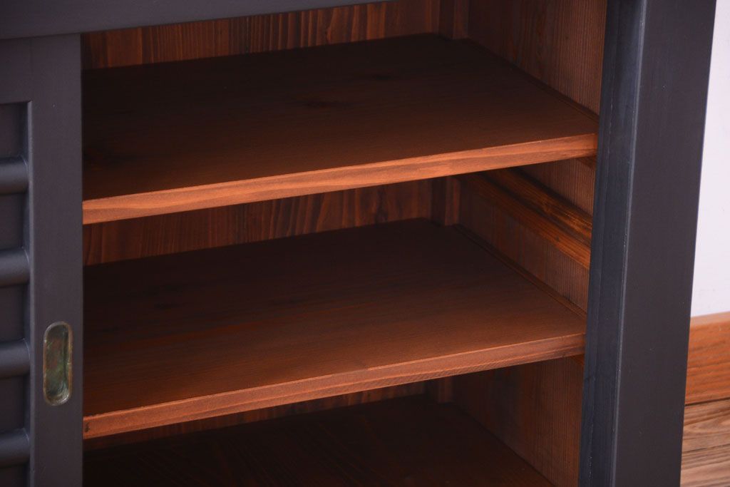 和箪笥> 水屋箪笥 > アンティーク家具 アンティーク 四尺 和モダン 艶消しブラック塗装!横桟引き戸の水屋箪笥ローボード(テレビボード)