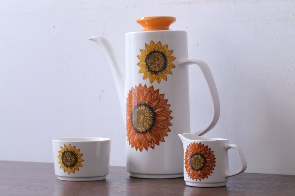 ラフジュ工房> 洋食器・キッチン用品> ポット・シュガーポット・クリーマー > イギリスビンテージ J&G MEAKIN(ミーキン) Palma(パルマ)シリーズ ポット・シュガー・クリーマー3点セット(洋食器)