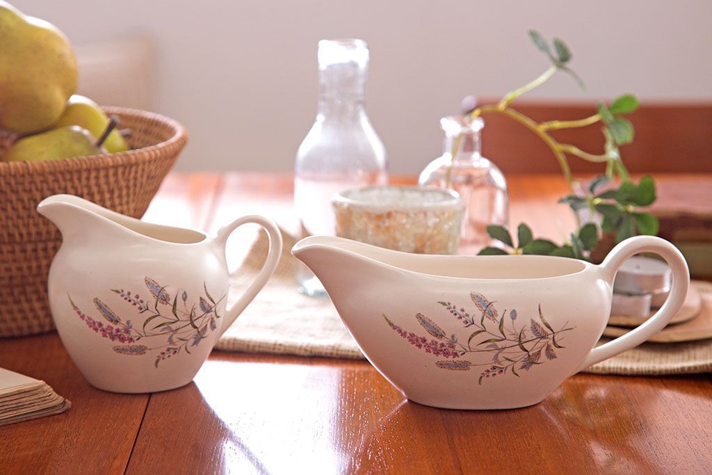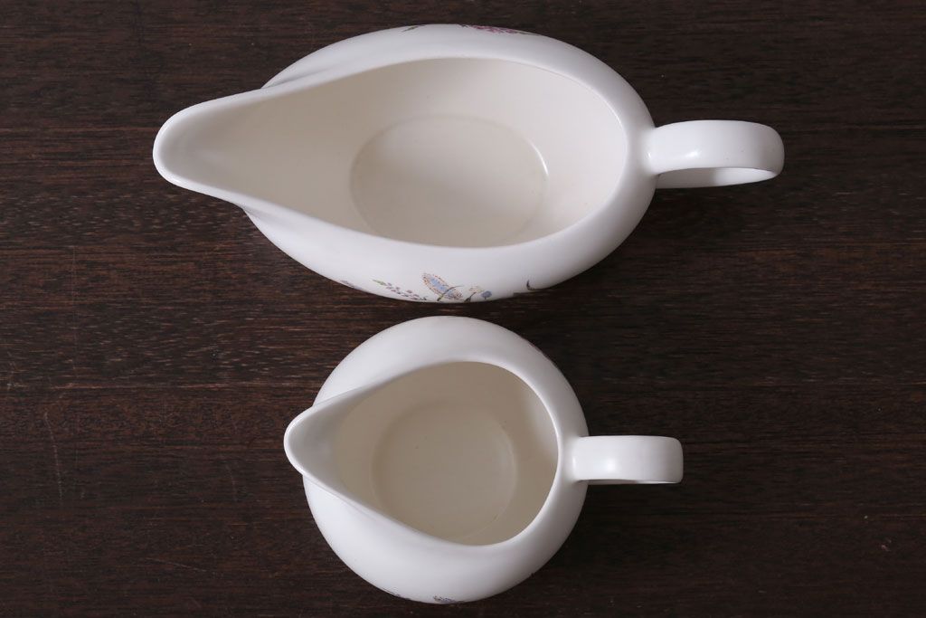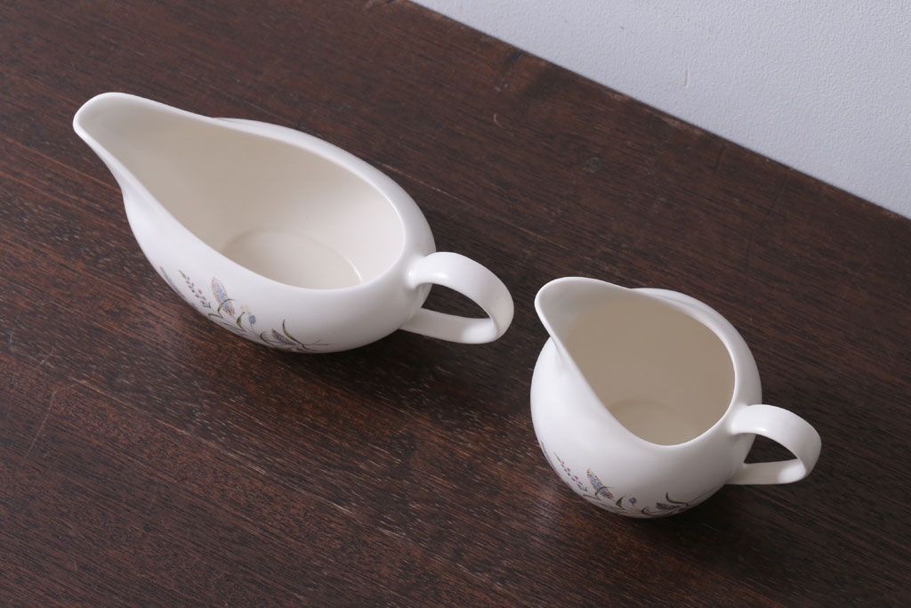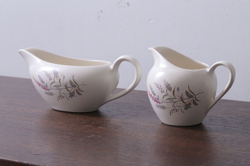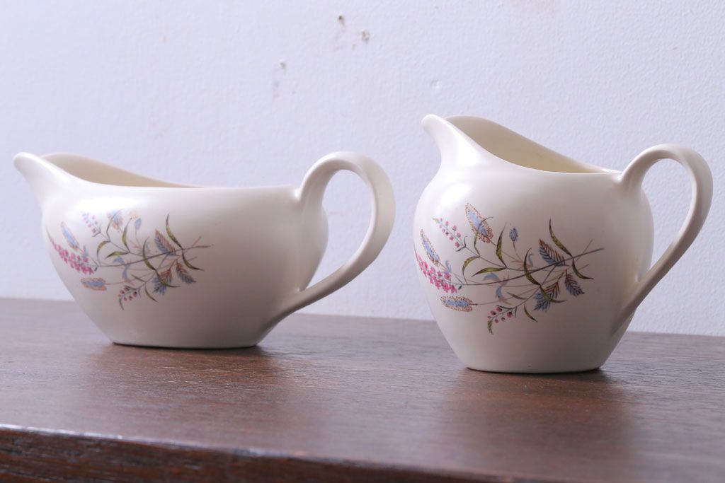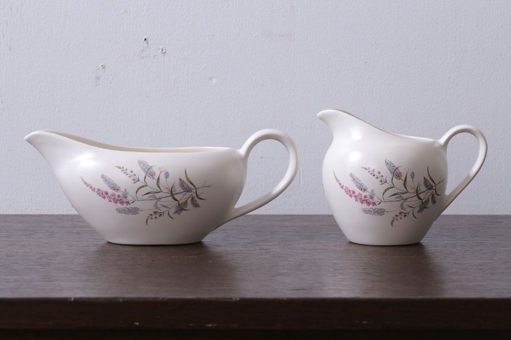 アンティーク雑貨 イギリスビンテージ J&G MEAKIN(ミーキン) ROMANY(ロマニー)シリーズ ソースボート・ミルクジャグ2点セット(洋食器)
