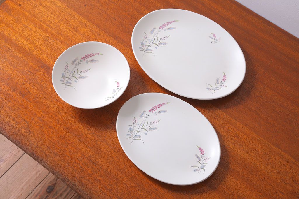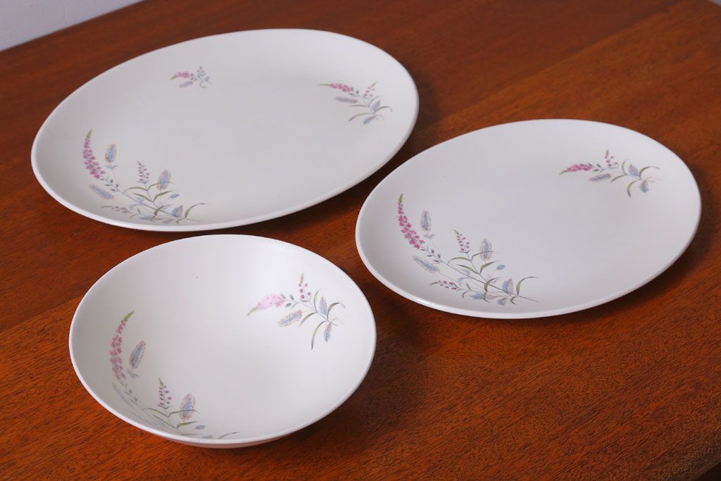 イギリスビンテージ J&G MEAKIN(ミーキン) ROMANY(ロマニー)シリーズ 深皿・大小オーバルプレート3点セット(洋食器)