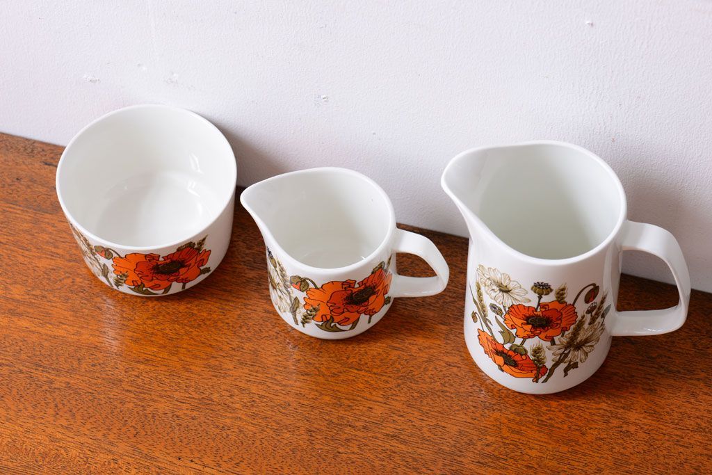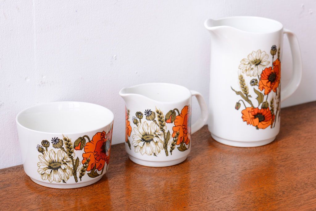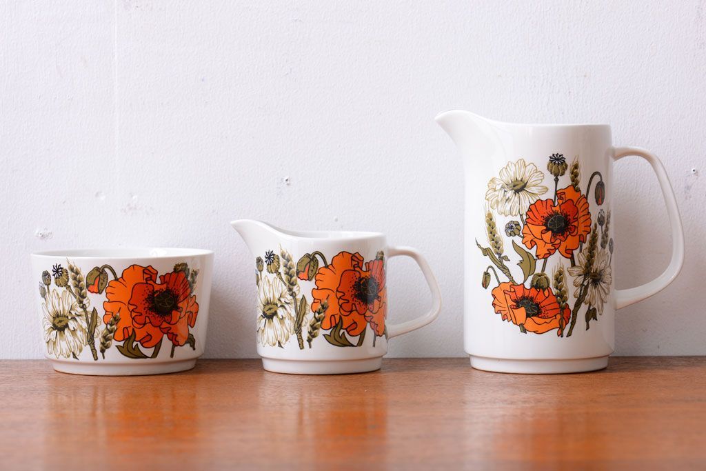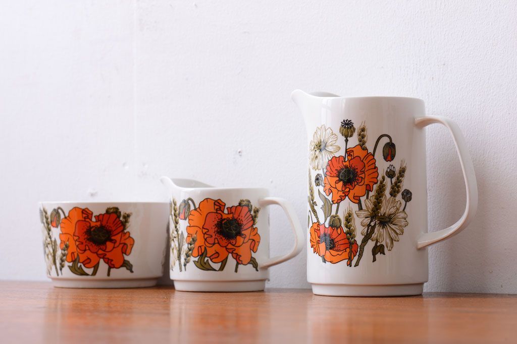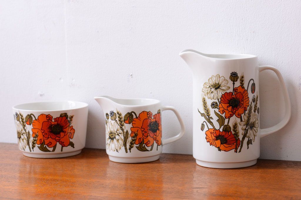 ラフジュ工房> 洋食器・キッチン用品> ティーセット > イギリスビンテージ J&G MEAKIN(ミーキン) POPPY(ポピー)シリーズ シュガー・大小ジャグ3点セット(洋食器)