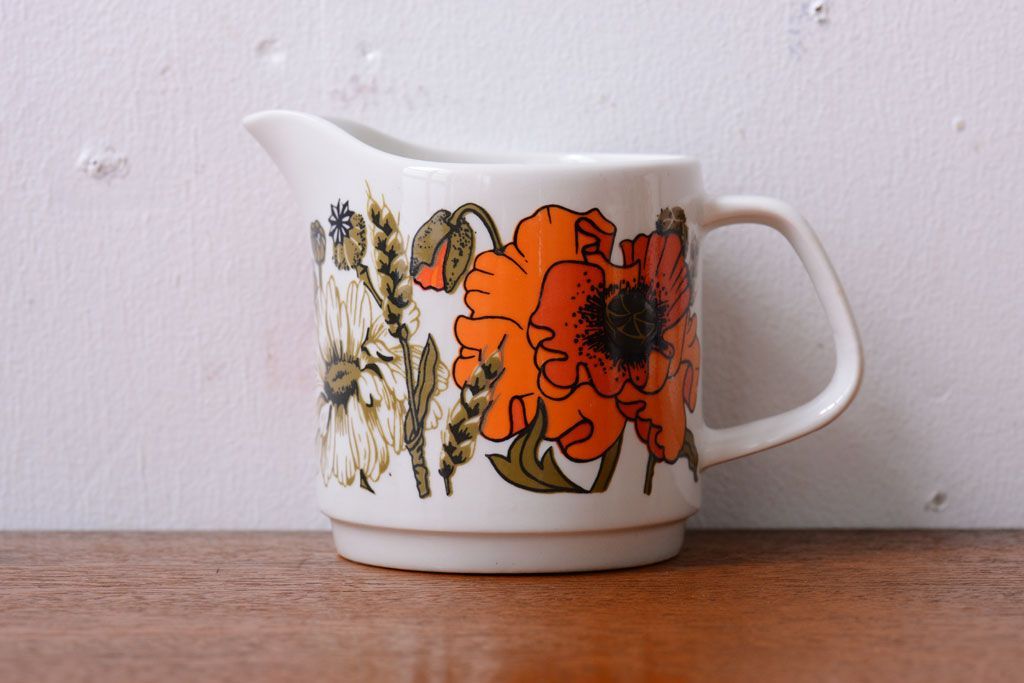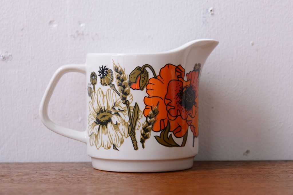 イギリスビンテージ J&G MEAKIN(ミーキン) POPPY(ポピー)シリーズ シュガー・大小ジャグ3点セット(洋食器)