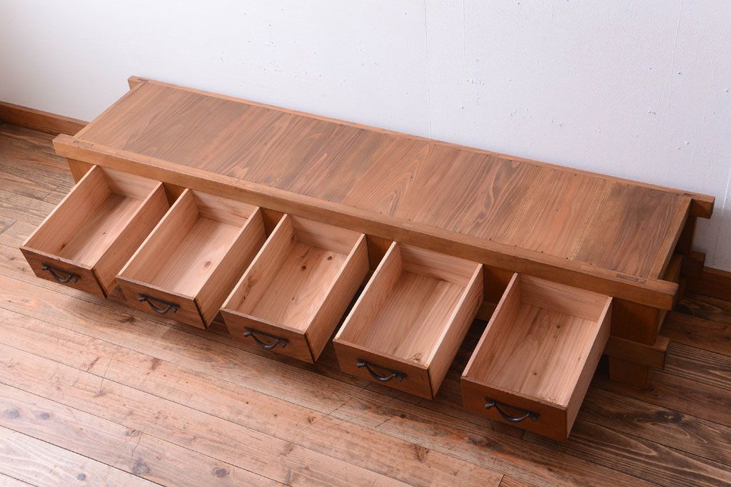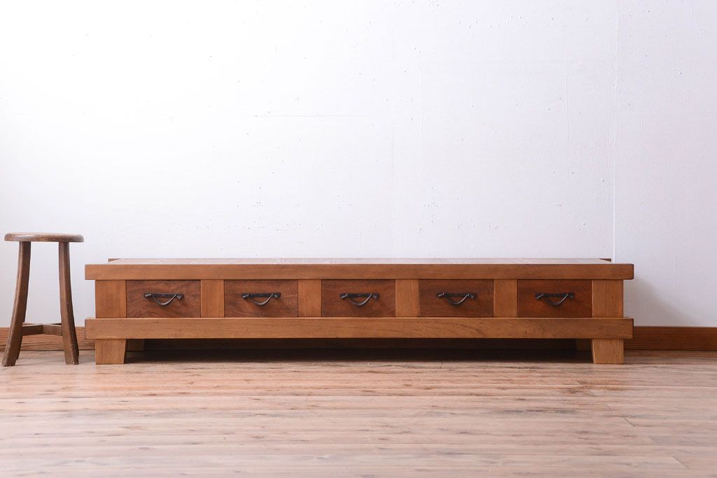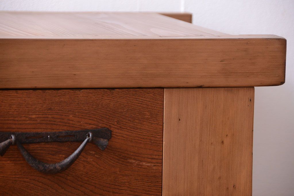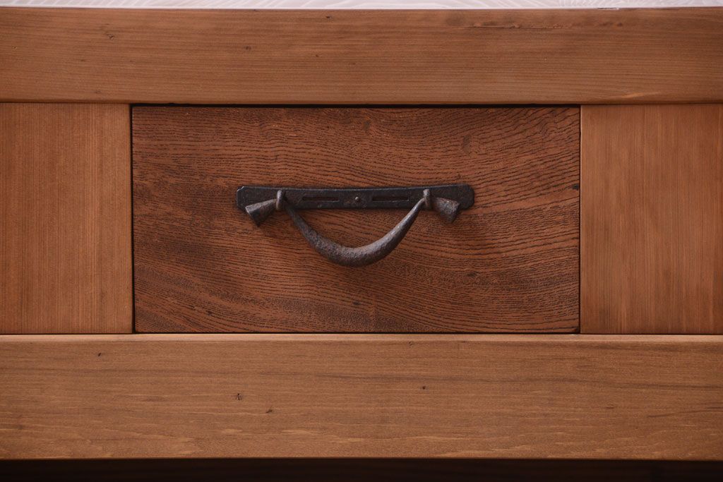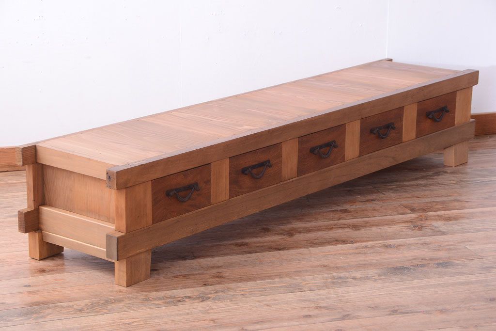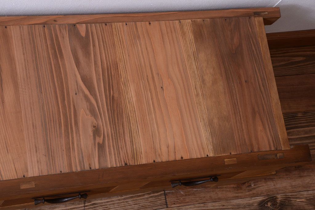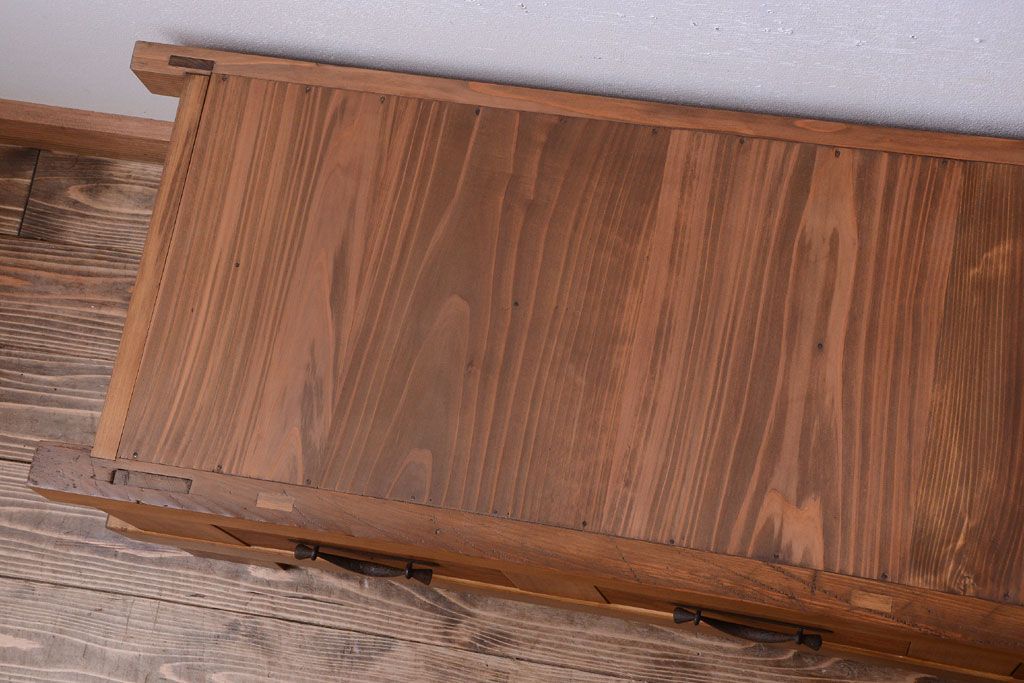古民具・骨董 明治〜大正 木味のアンティーク脚付き水屋箪笥ローボードです。