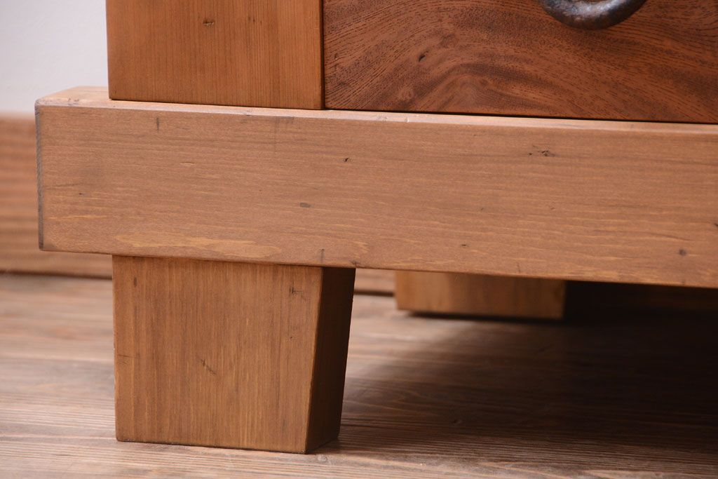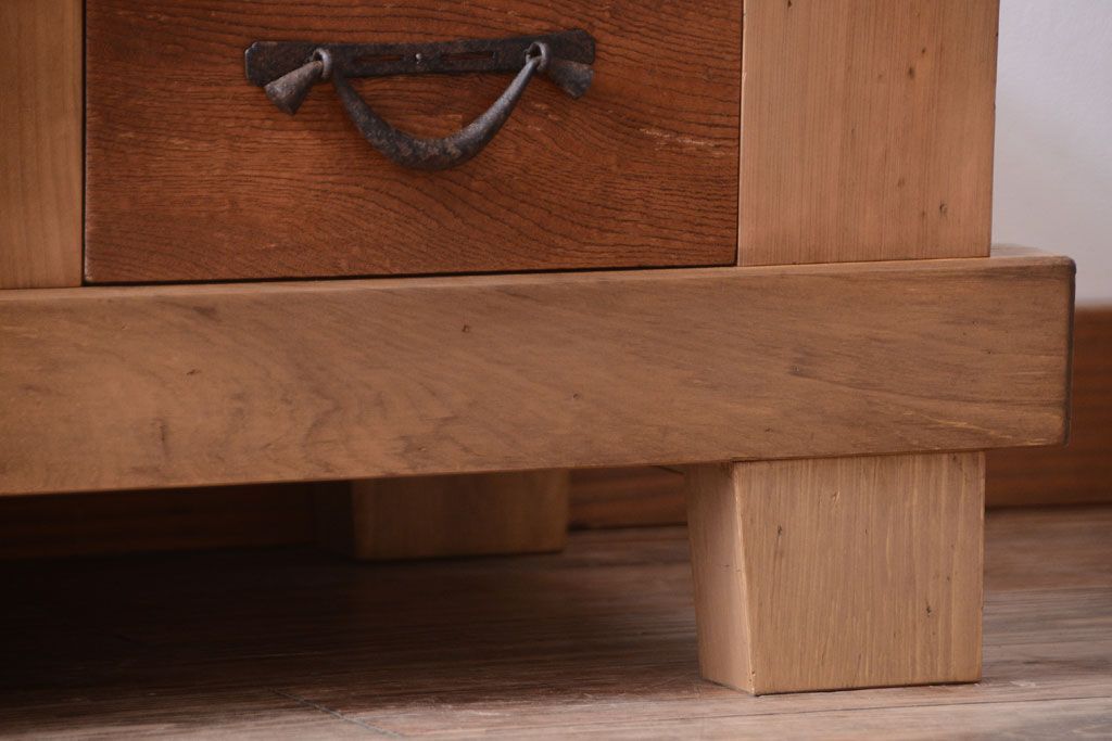 キャビネット・戸棚> テレビ台・ローボード > アンティーク家具 古民具・骨董 明治〜大正 木味のアンティーク脚付き水屋箪笥ローボード(テレビ台、キャビネット、収納棚)