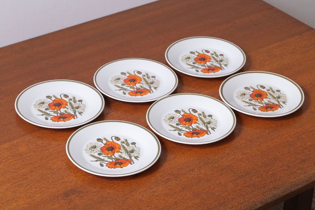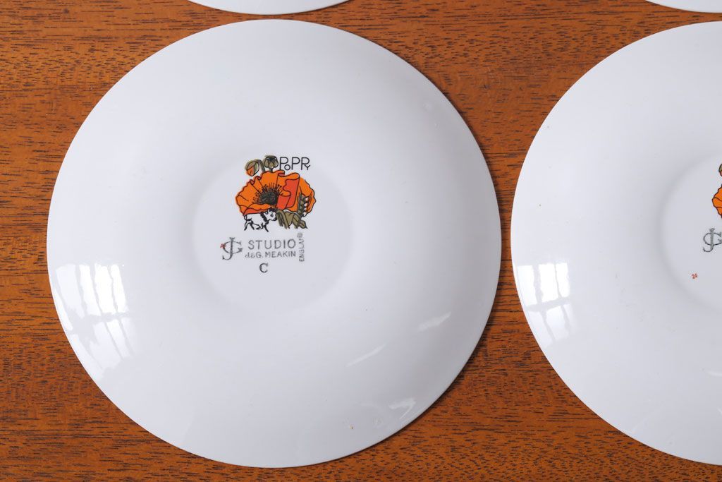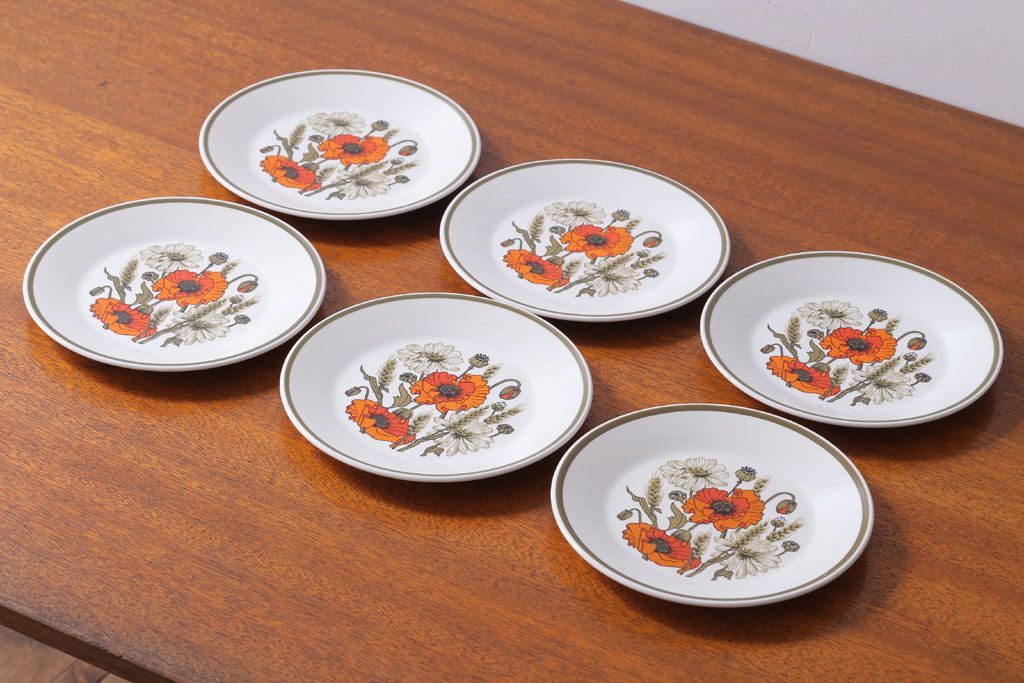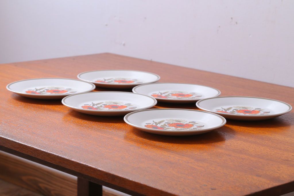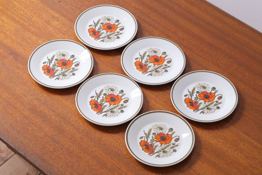 アンティーク雑貨 イギリスビンテージ J&G MEAKIN(ミーキン) POPPY(ポピー)シリーズ プレート6枚セット(洋食器)