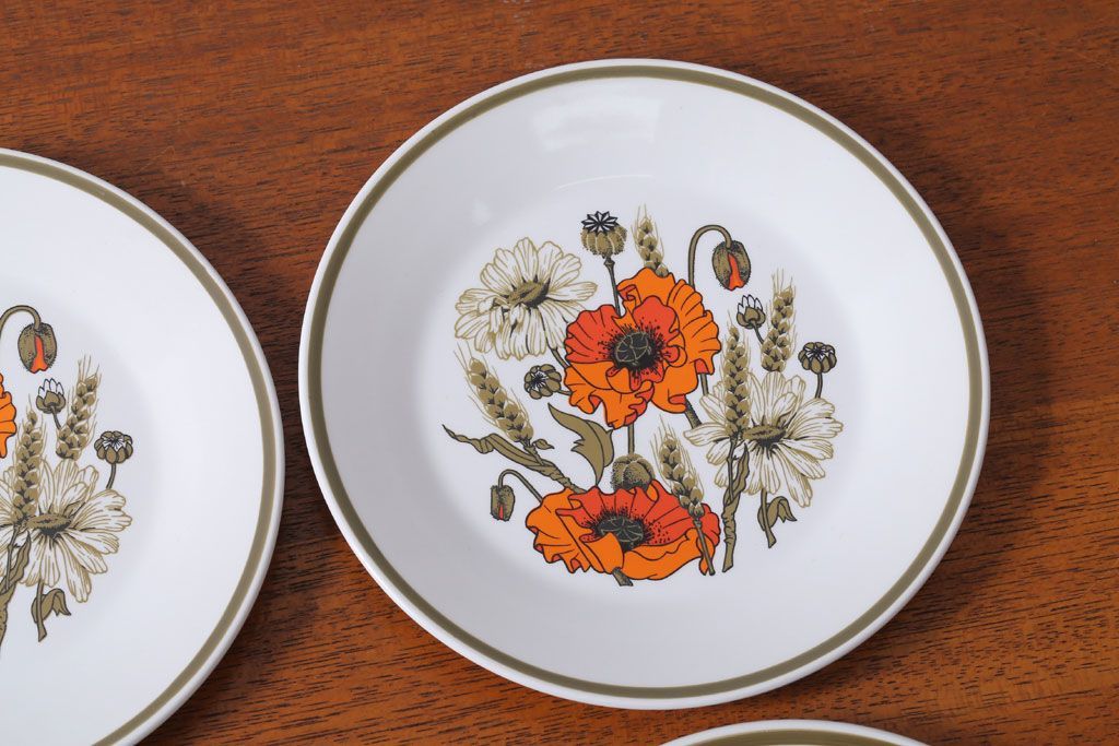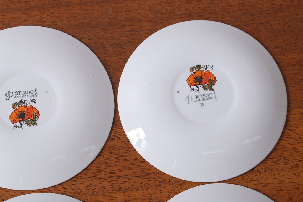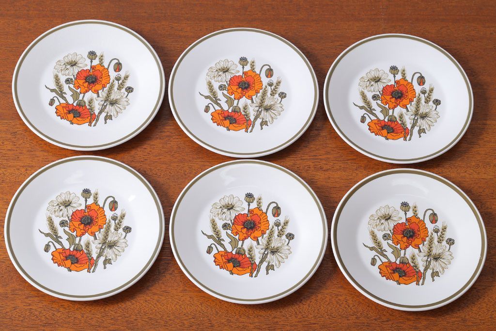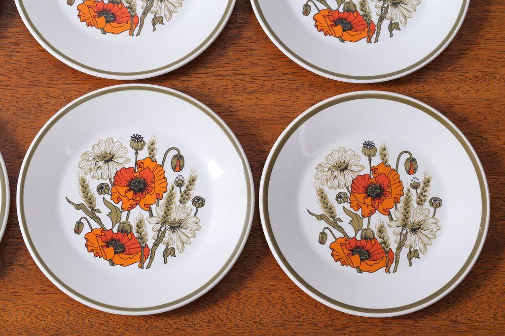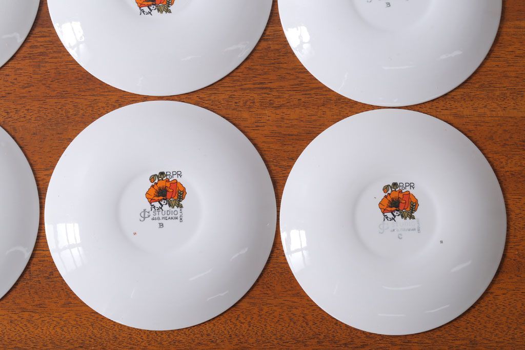 アンティーク雑貨 イギリスビンテージ J&G MEAKIN(ミーキン) POPPY(ポピー)シリーズ プレート6枚セット(洋食器)