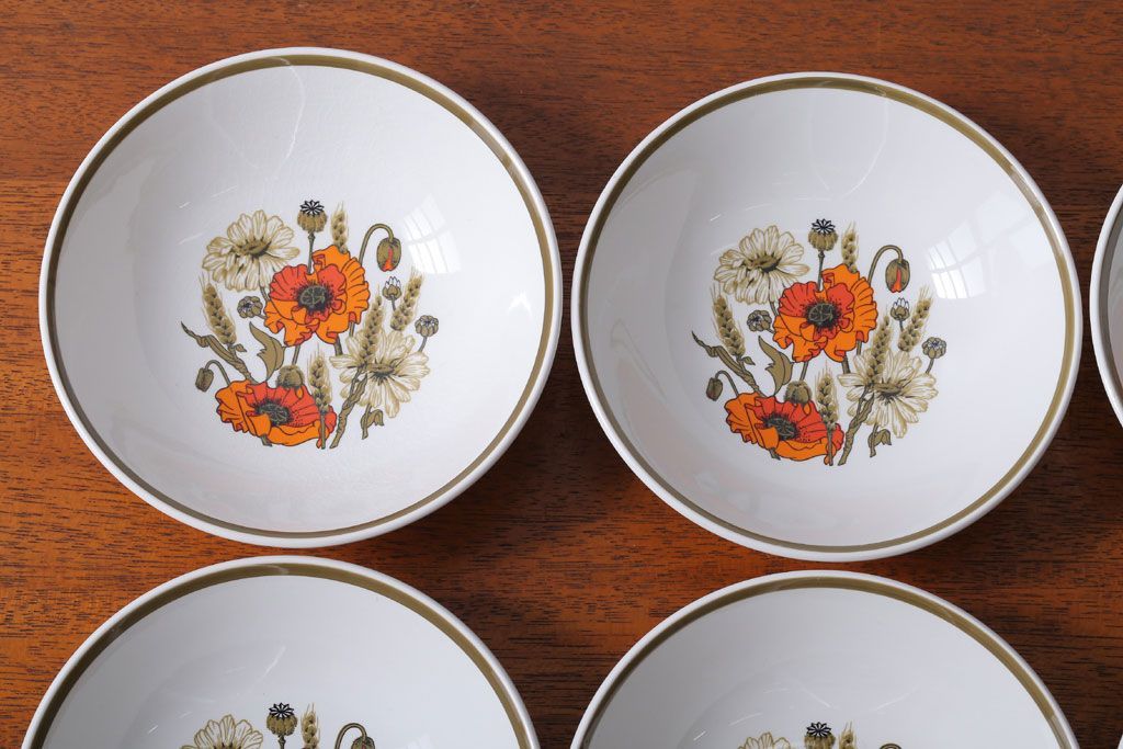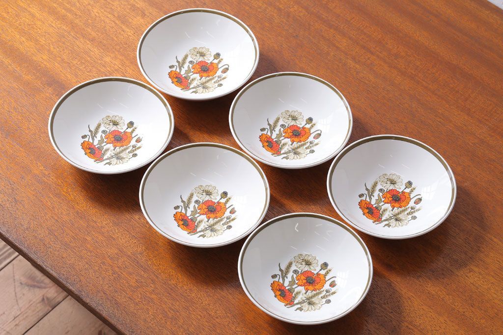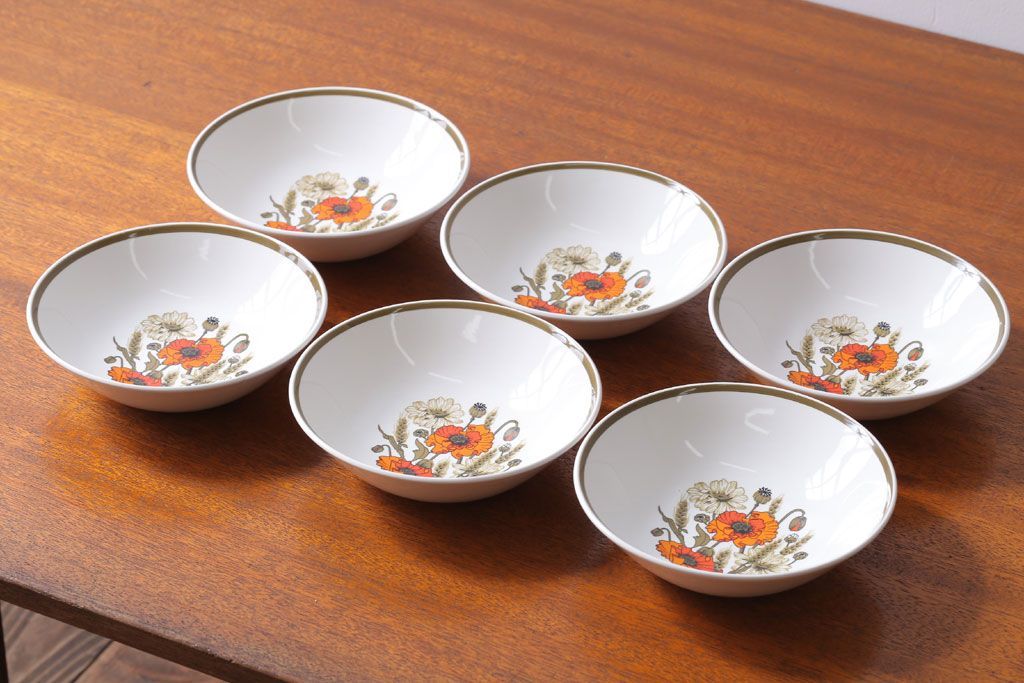 アンティーク雑貨 イギリスビンテージ J&G MEAKIN(ミーキン) POPPY(ポピー)シリーズ 深皿6点セット(洋食器)