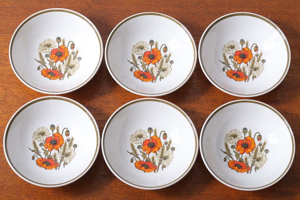 ラフジュ工房> 洋食器・キッチン用品> 皿・プレート > アンティーク雑貨 イギリスビンテージ J&G MEAKIN(ミーキン) POPPY(ポピー)シリーズ 深皿6点セット(洋食器)