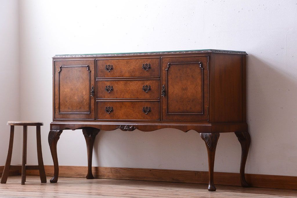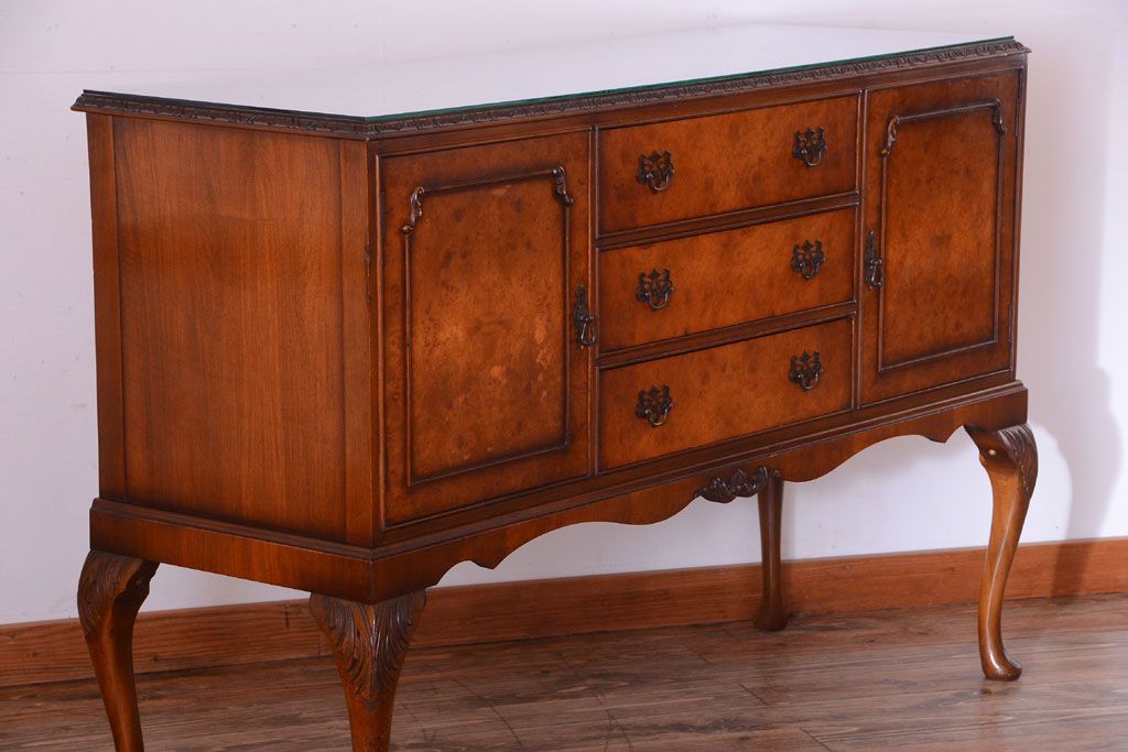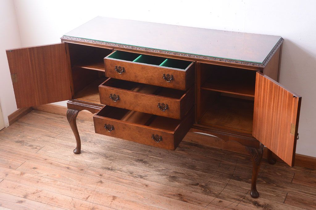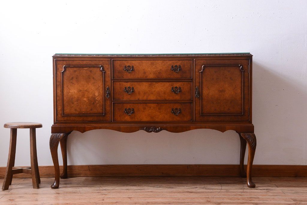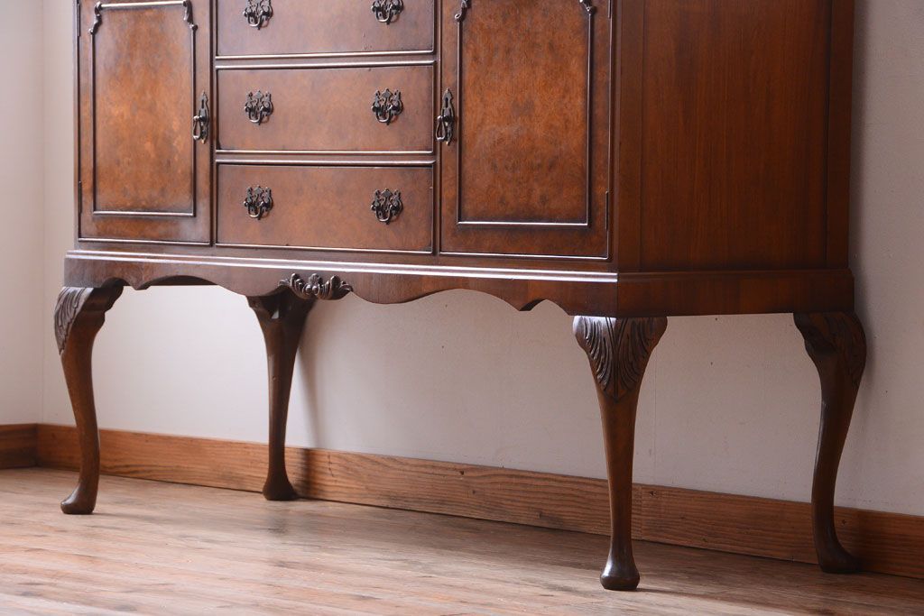 イギリスアンティーク 美品!ウォールナット材の高級猫脚サイドボード