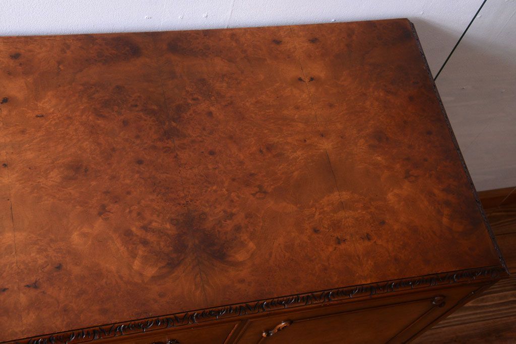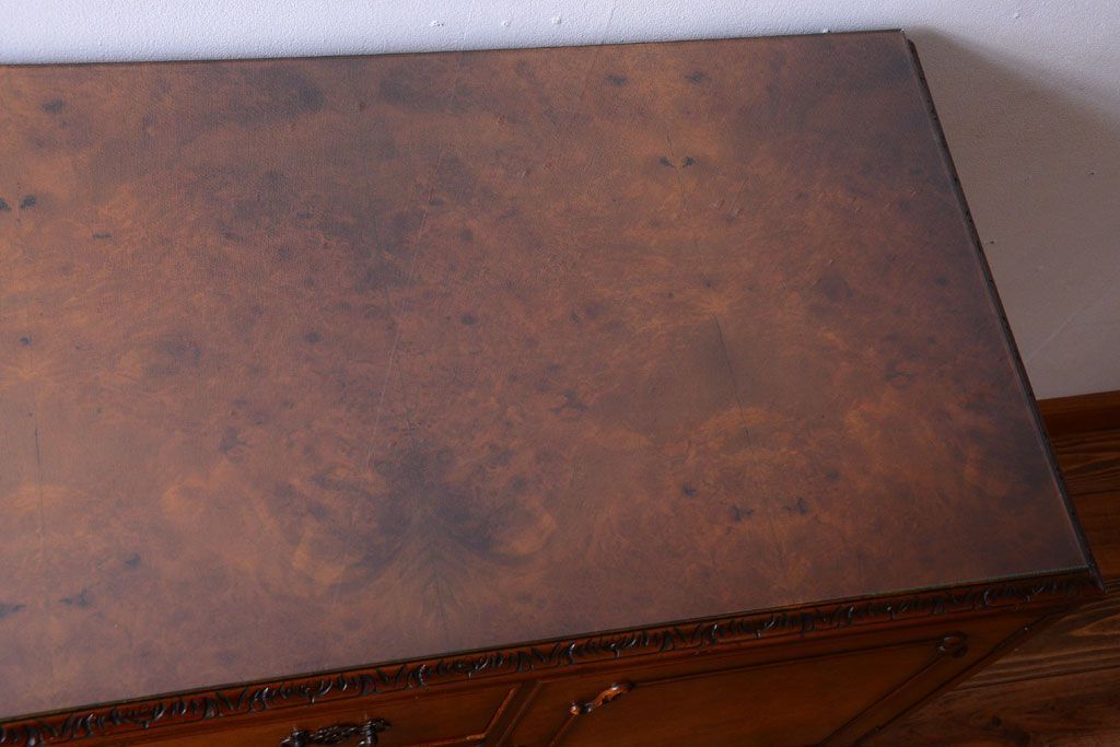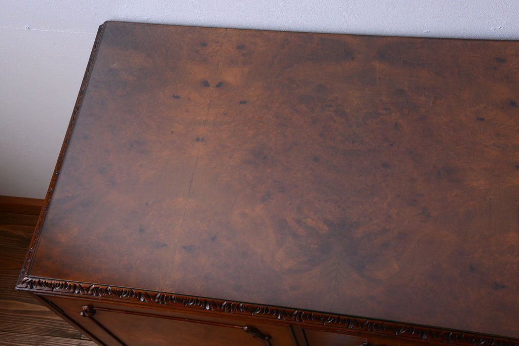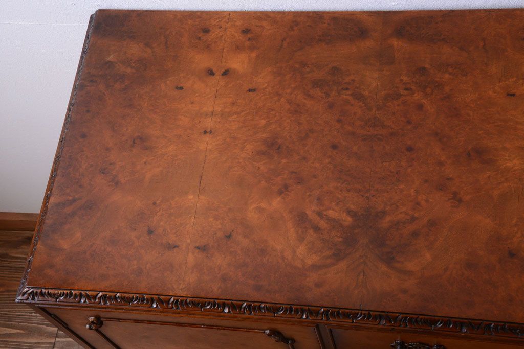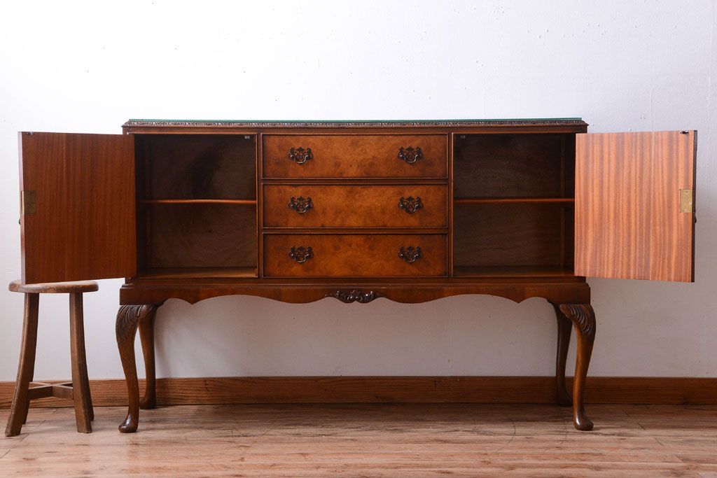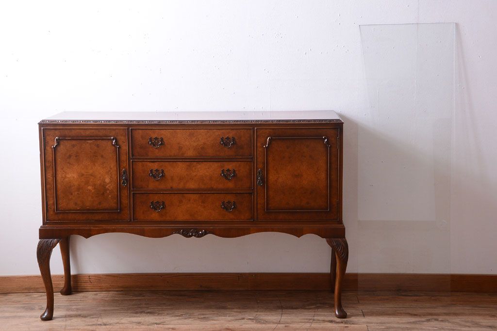 イギリスアンティーク 美品!ウォールナット材の高級猫脚サイドボード