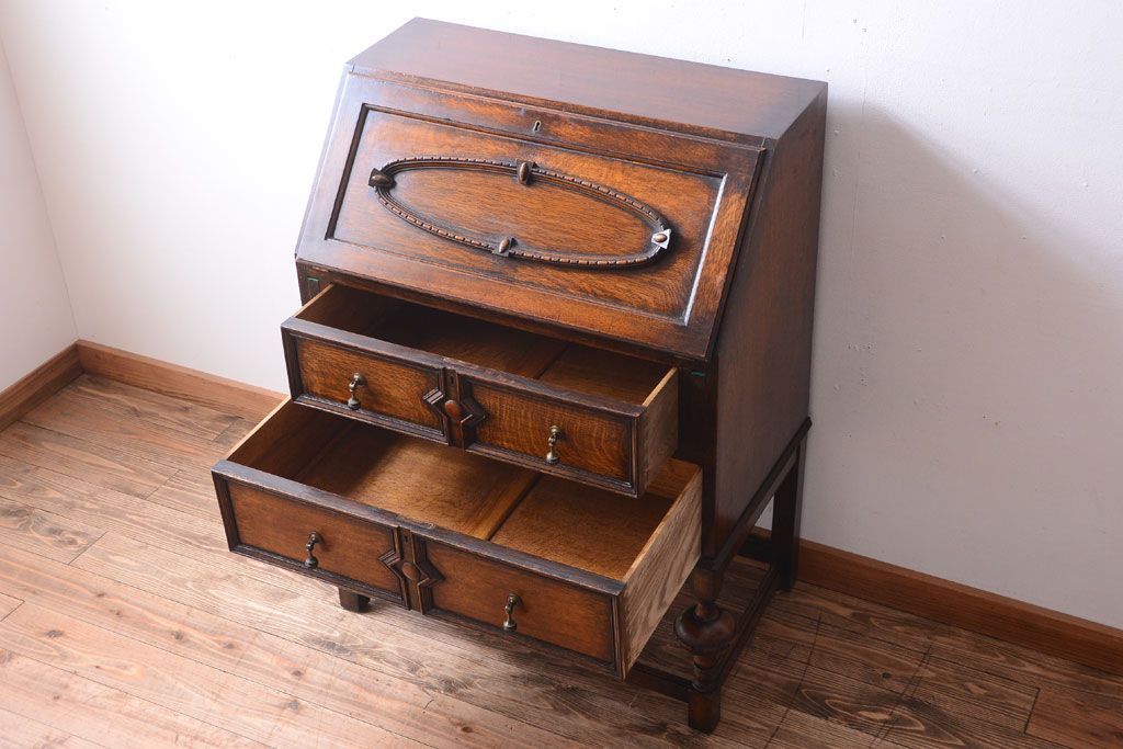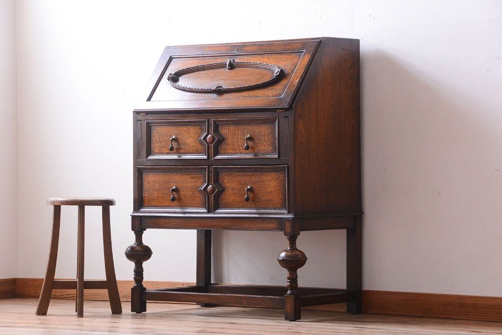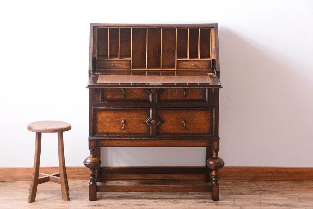 アンティーク家具 イギリスアンティーク 古いオーク材の上質なライティングビューロー