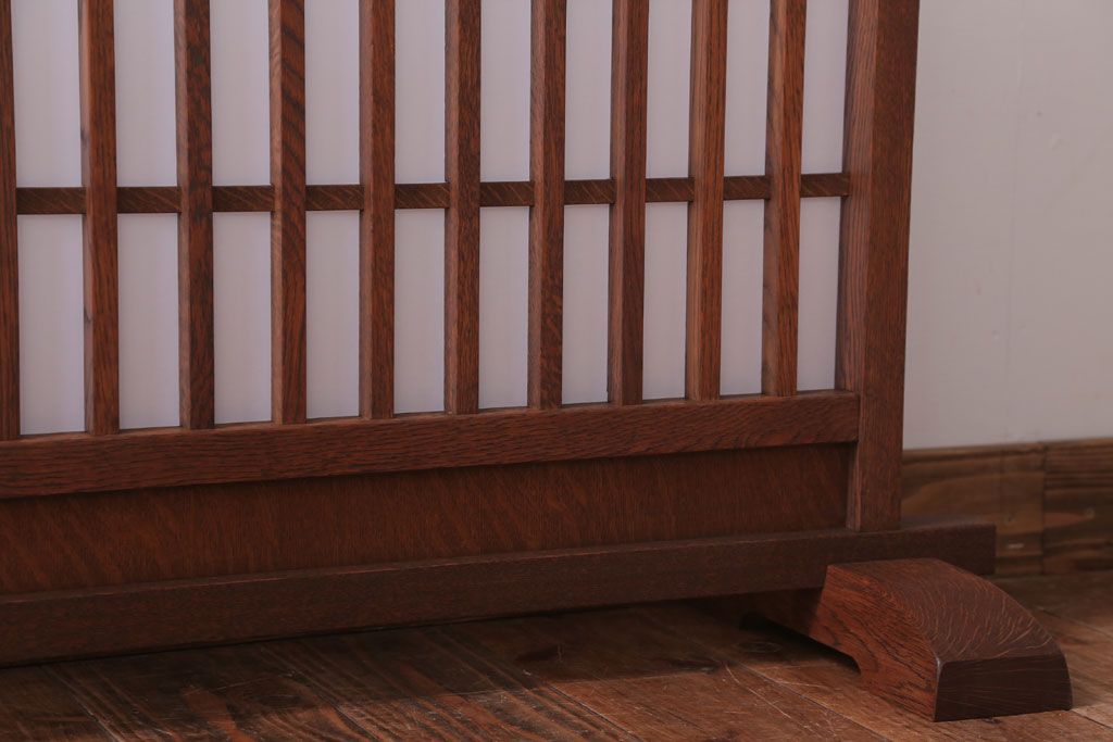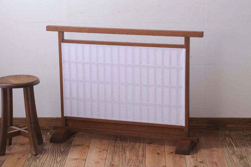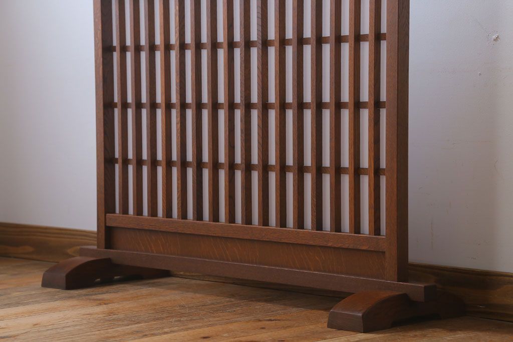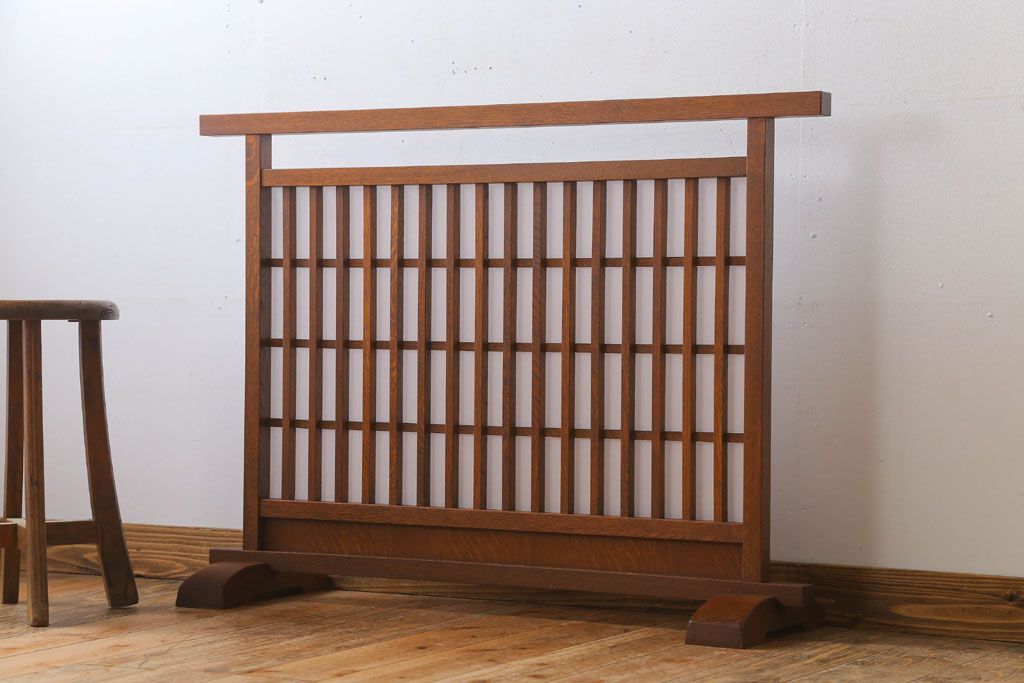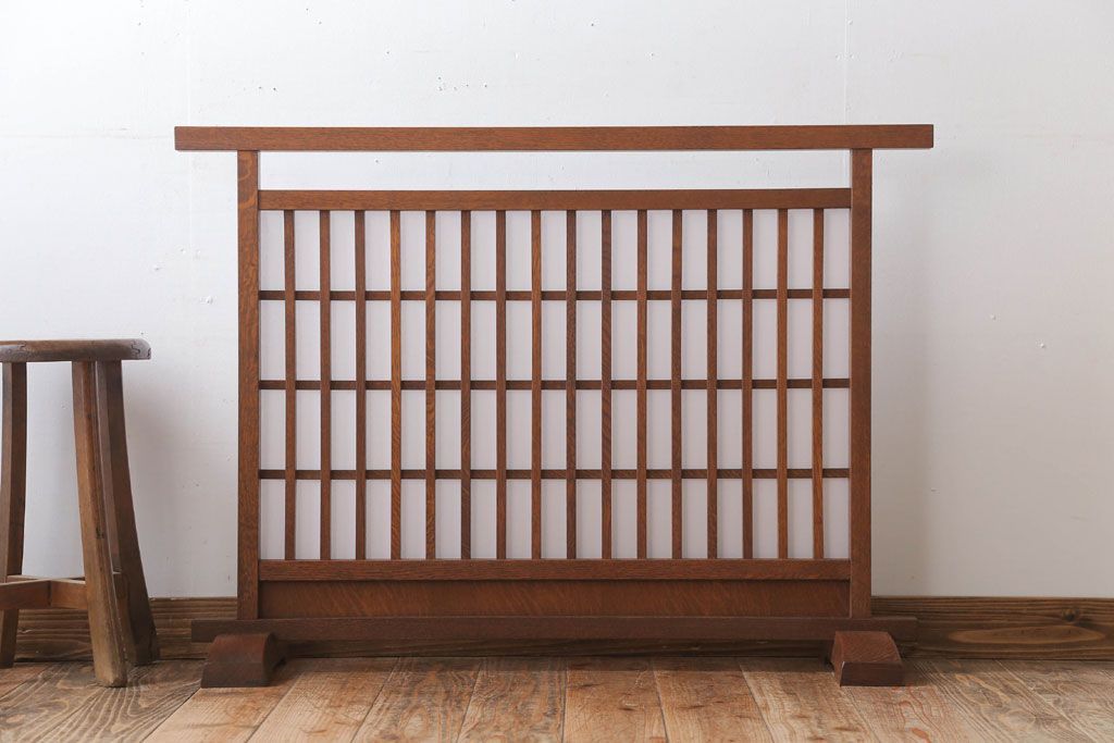 アンティーク 古いナラ材の小ぶりな障子格子衝立て(パーテーション)です。