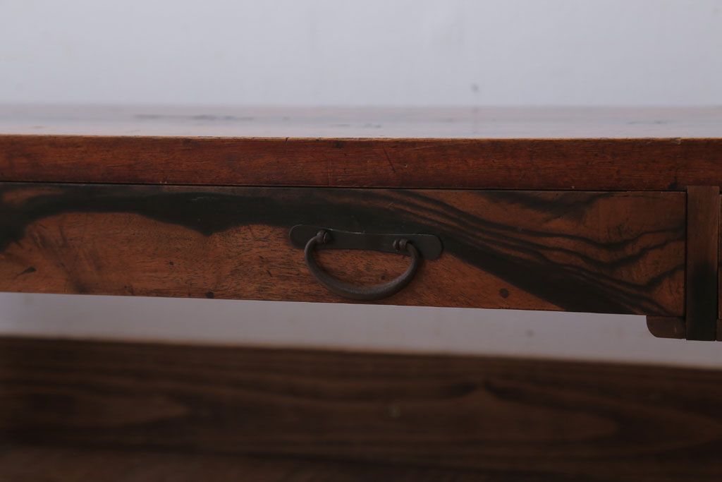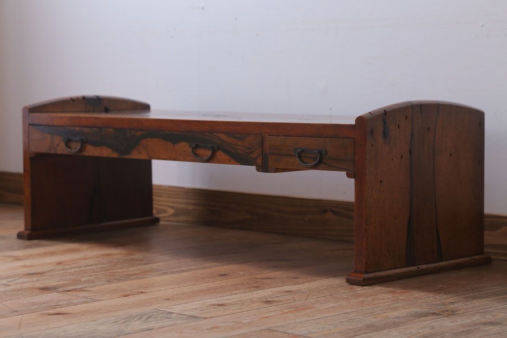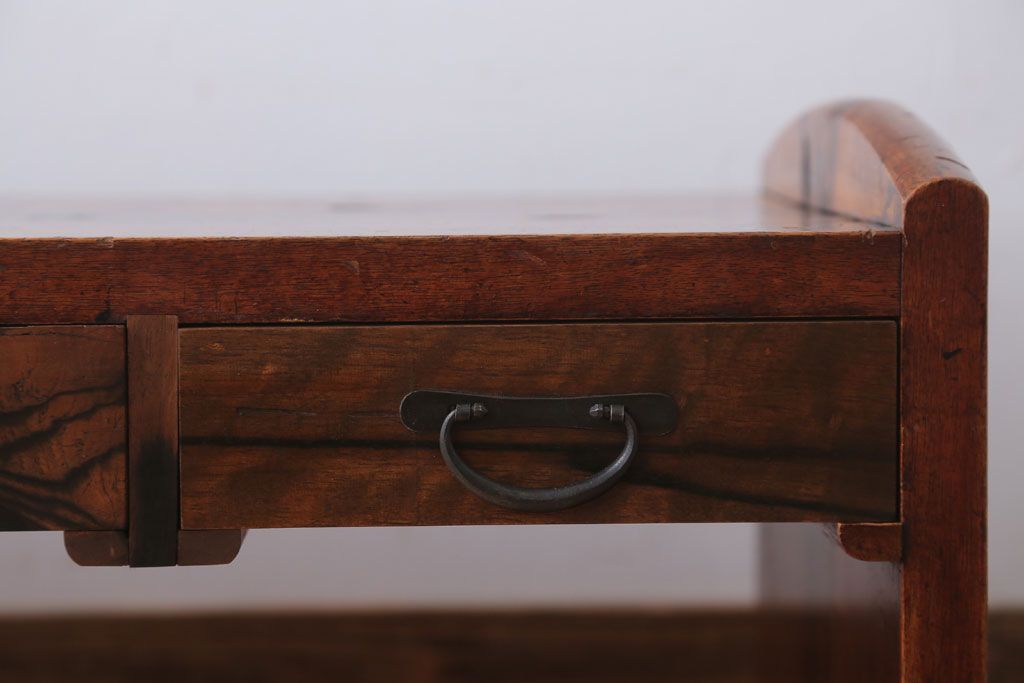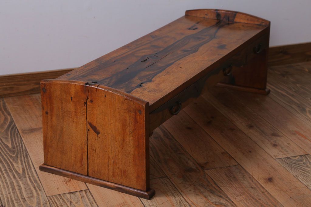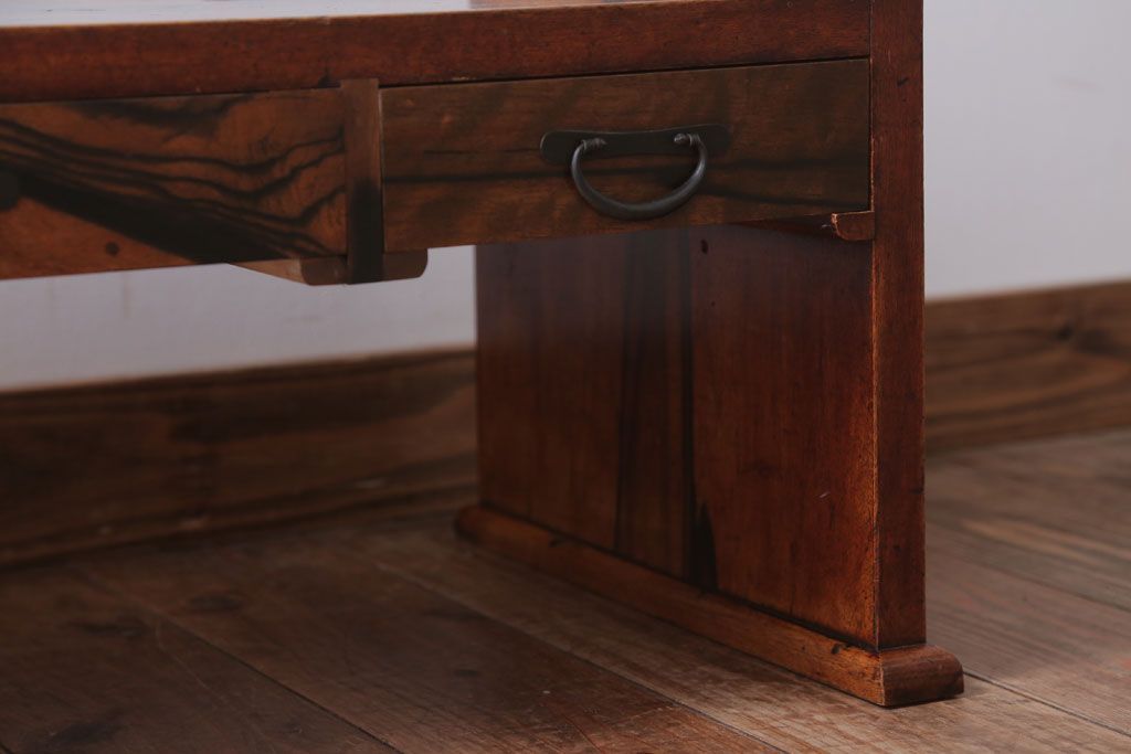 アンティーク家具 ジャンク品 古民具・骨董 明治〜大正期 古い黒柿材のアンティーク文机