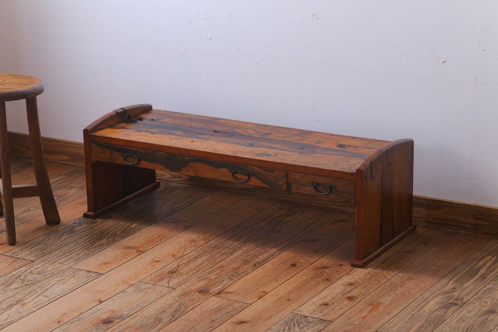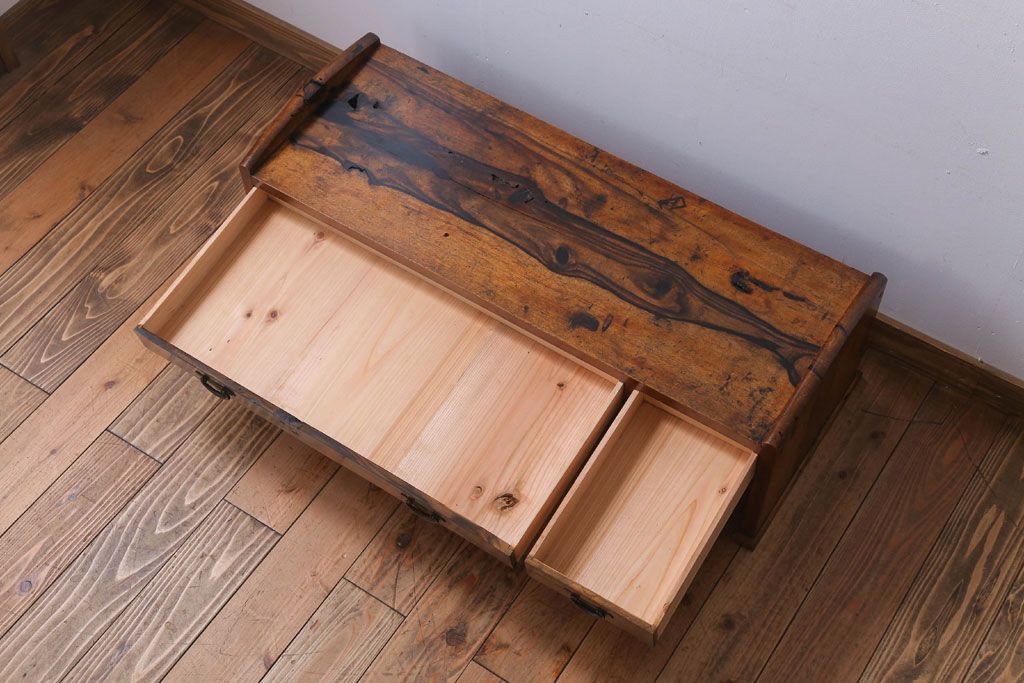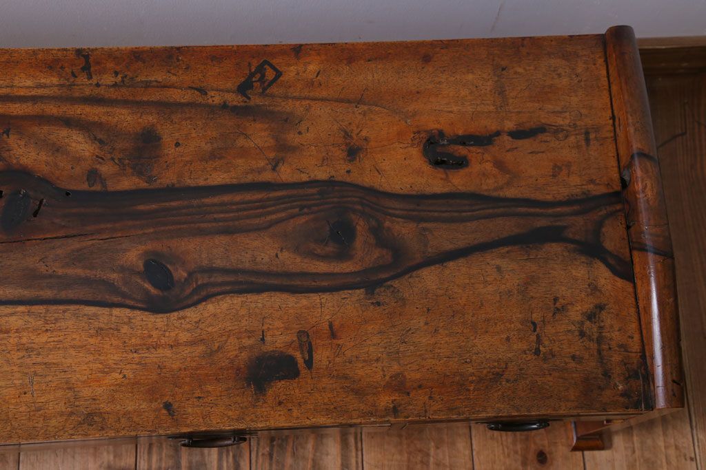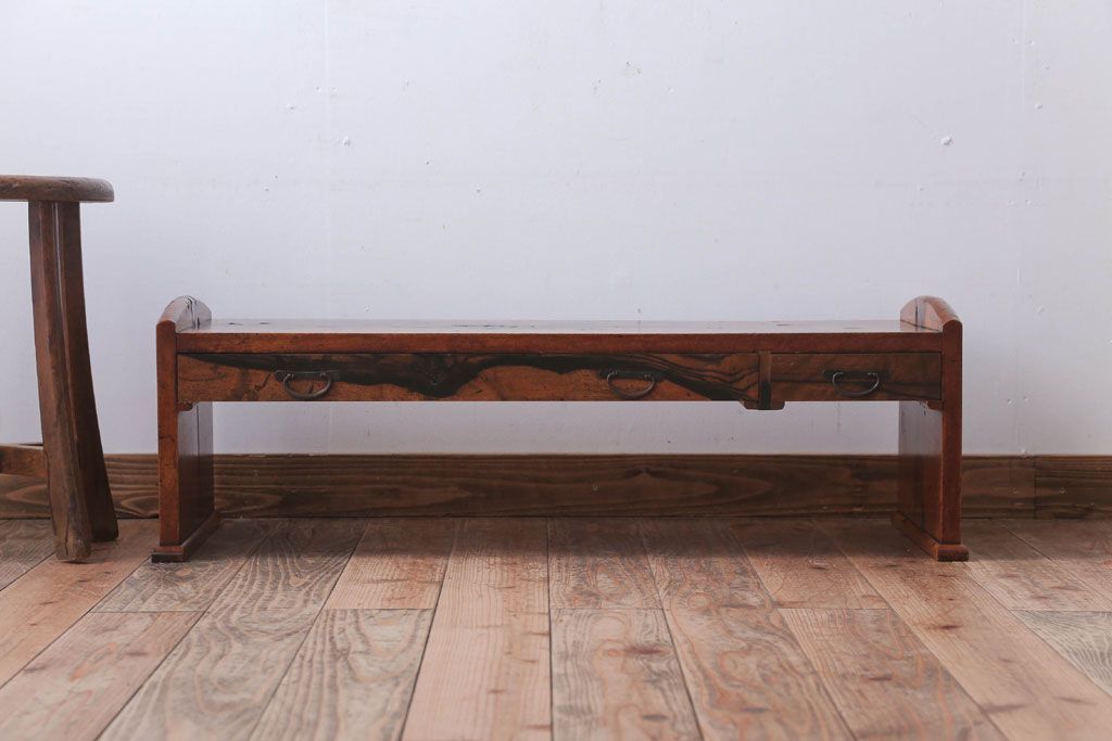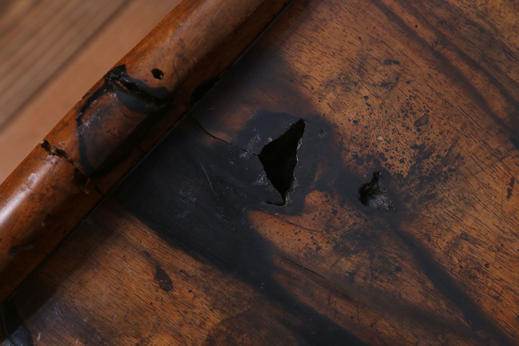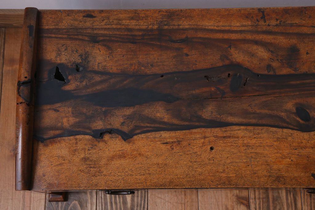 アンティーク家具 ジャンク品 古民具・骨董 明治〜大正期 古い黒柿材のアンティーク文机