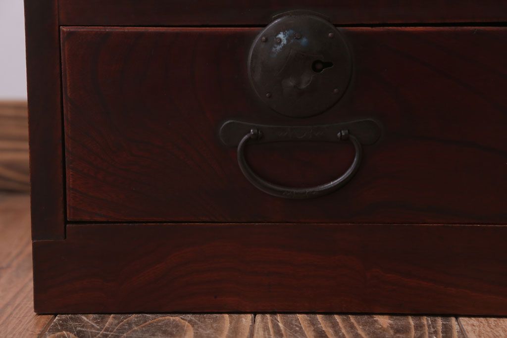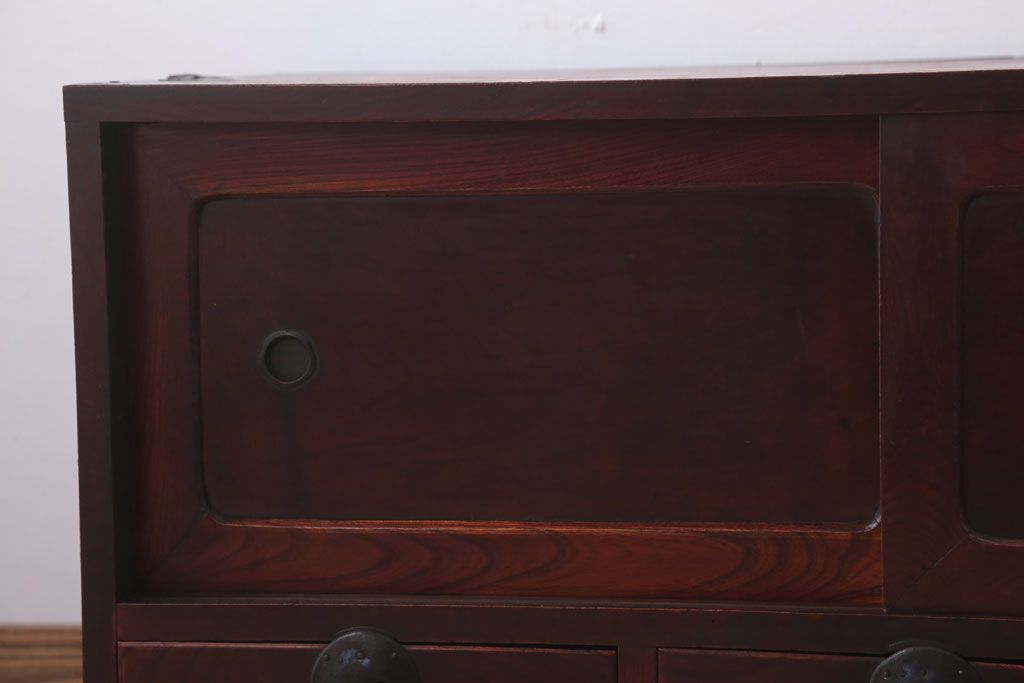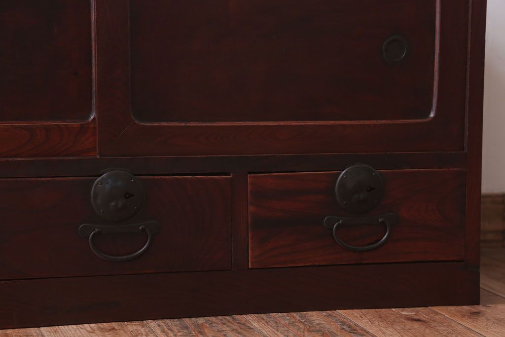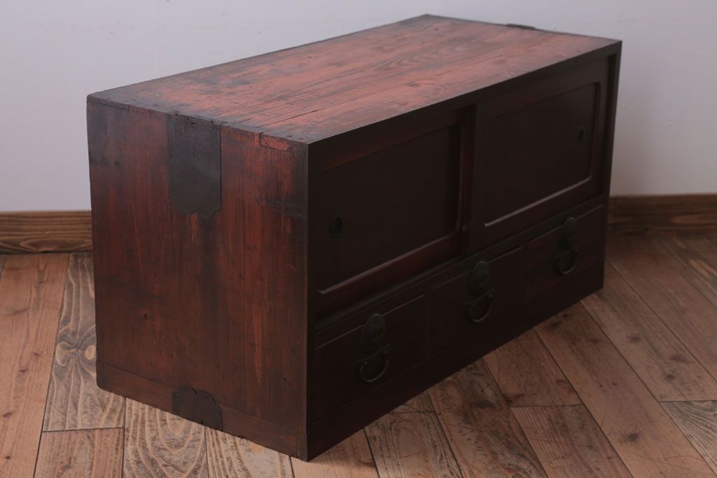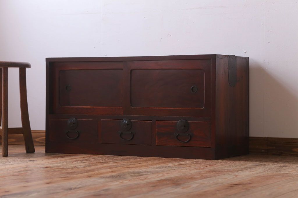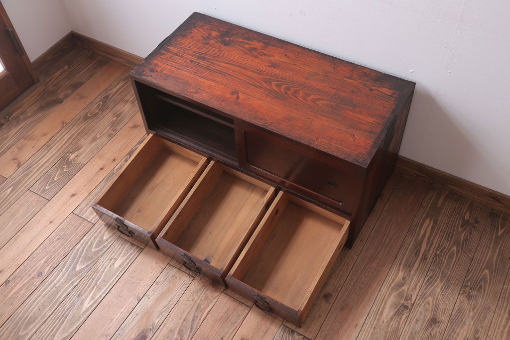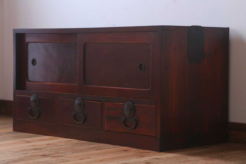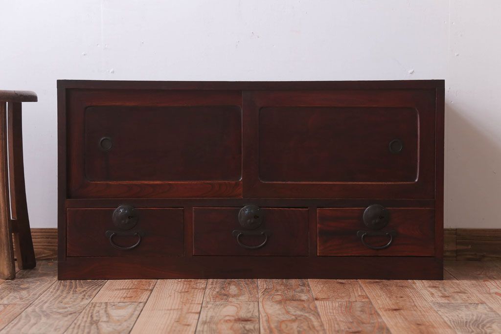アンティーク家具 古民具・骨董 大正期 前面欅材!古い木製の時代箪笥ローボード