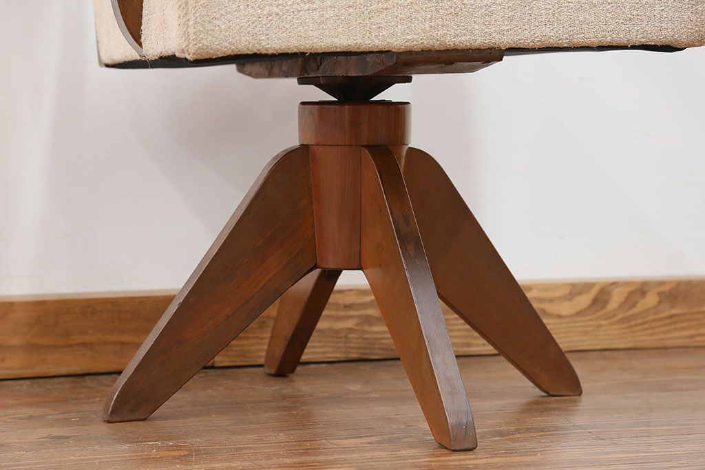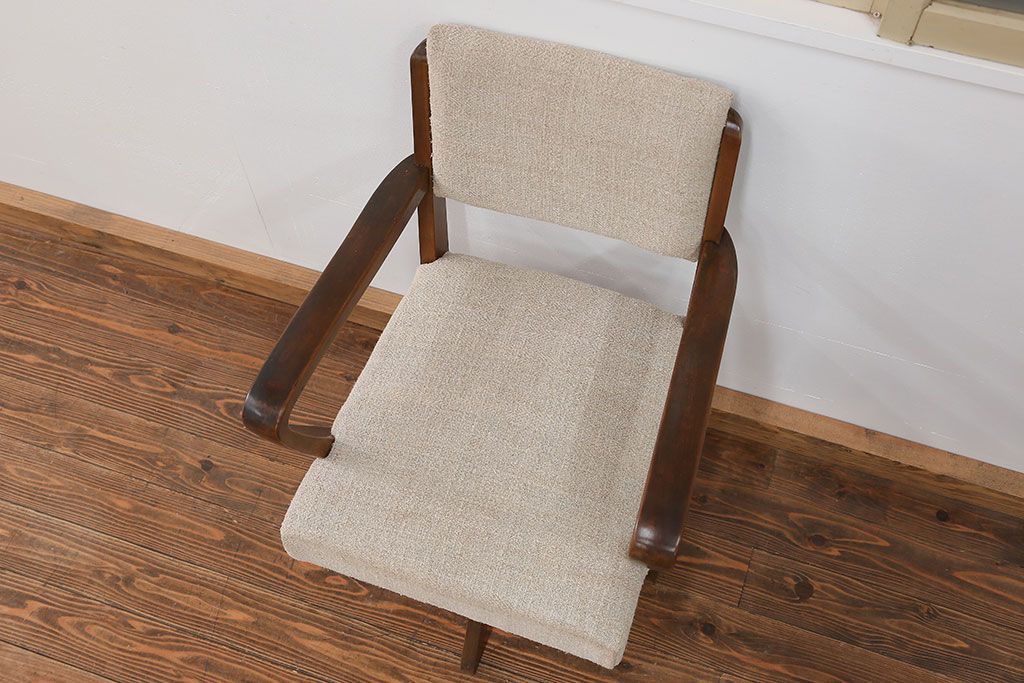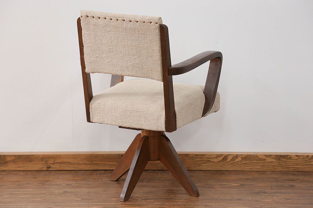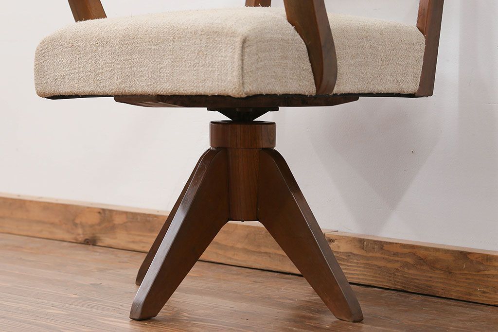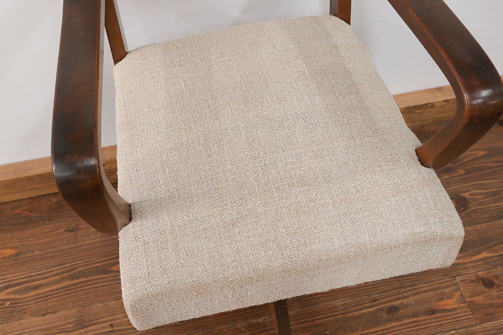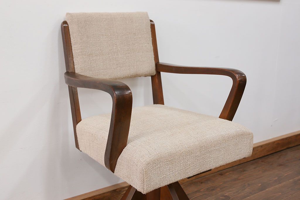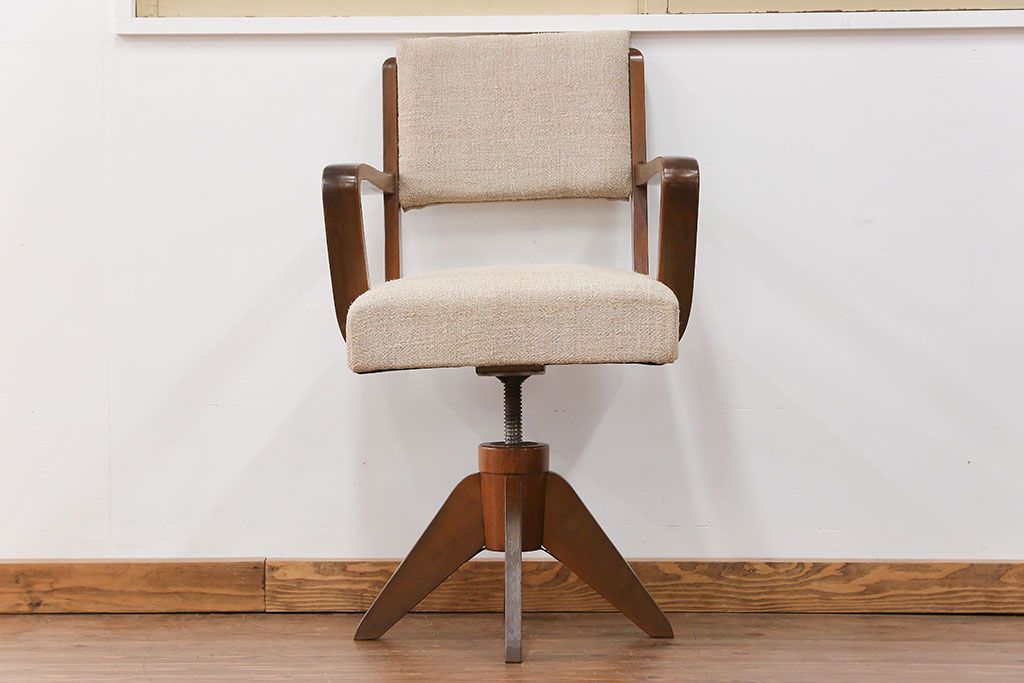 ラフジュ工房> 椅子・ベンチ> アームチェア > レトロ家具 和製アンティーク アンティークリネン座面のレトロな回転椅子(回転イス、ドクターチェア)