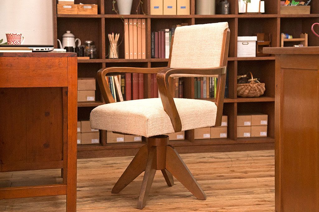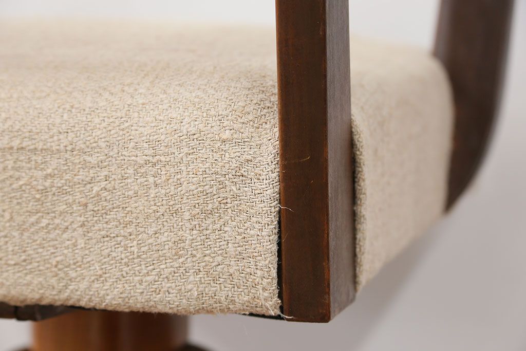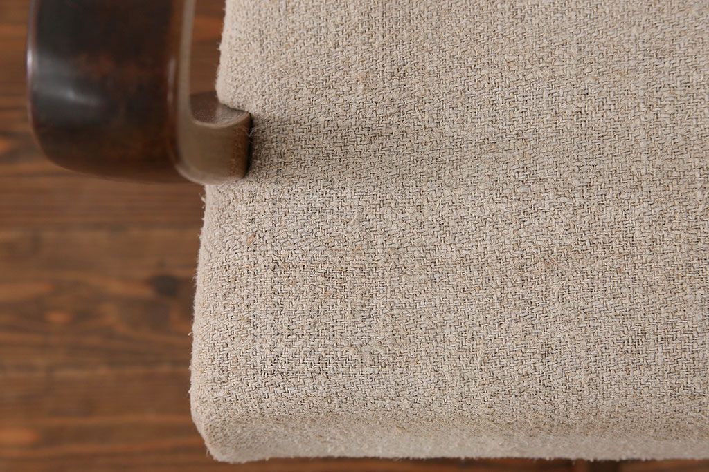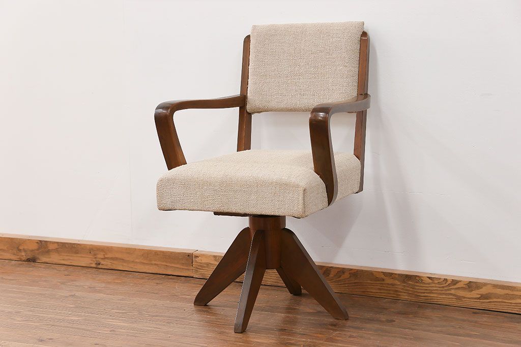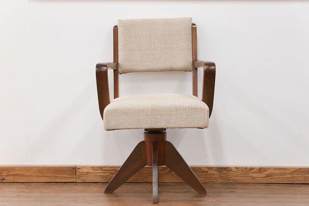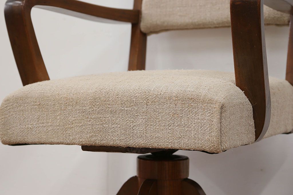 ラフジュ工房> 椅子・ベンチ> アームチェア > レトロ家具 和製アンティーク アンティークリネン座面のレトロな回転椅子(回転イス、ドクターチェア)