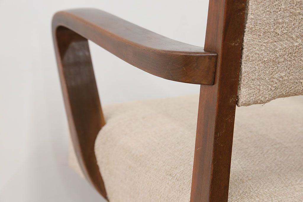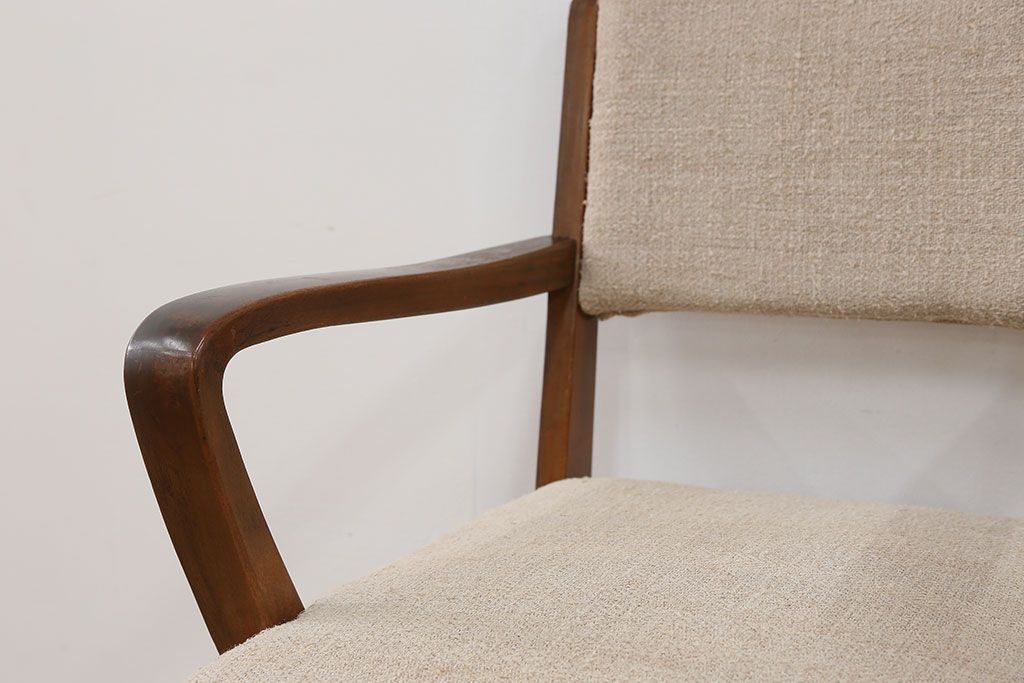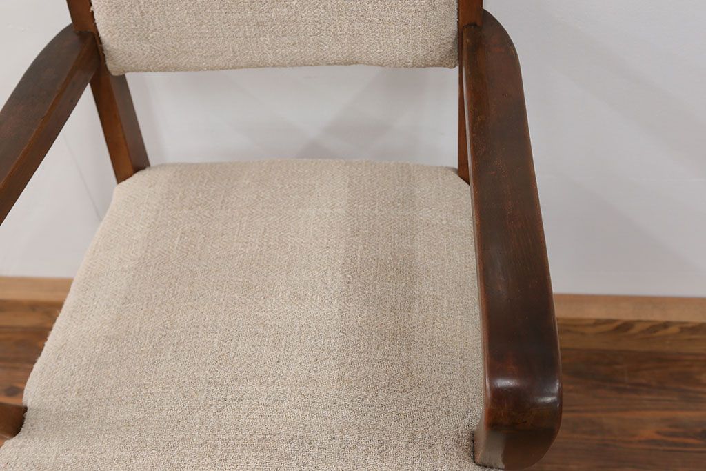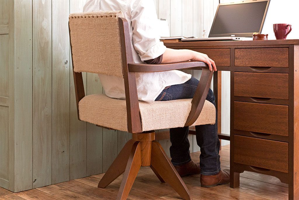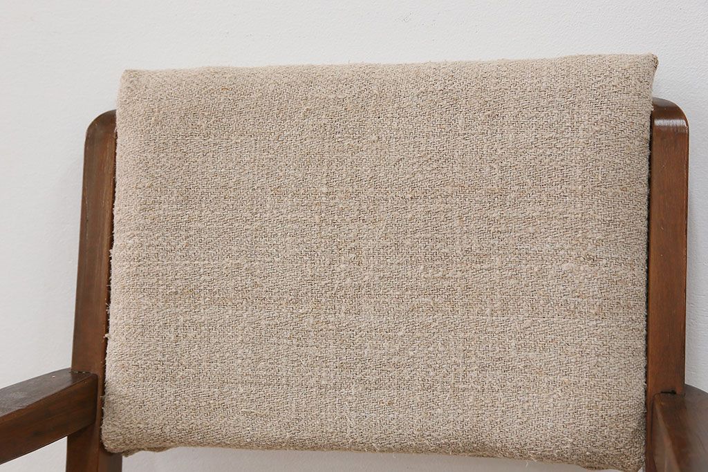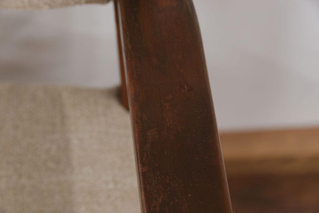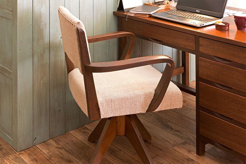 ラフジュ工房> 椅子・ベンチ> アームチェア > レトロ家具 和製アンティーク アンティークリネン座面のレトロな回転椅子(回転イス、ドクターチェア)