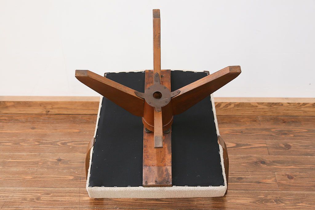 レトロ家具 和製アンティーク アンティークリネン座面のレトロな回転椅子(回転イス、ドクターチェア)