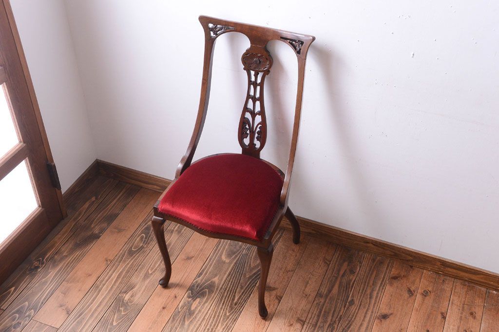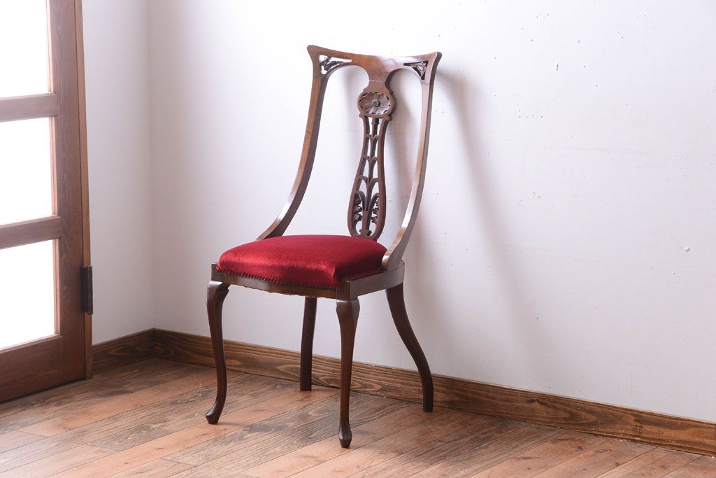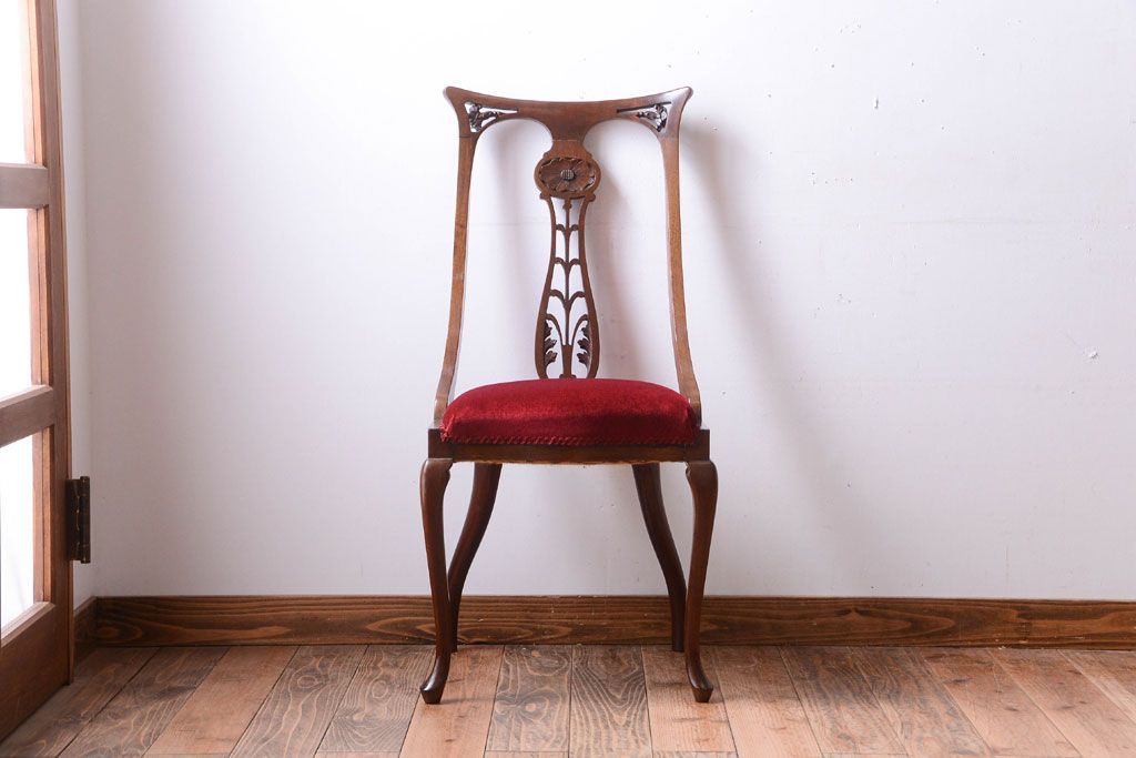 ヴィンテージ家具 イギリスビンテージ 透かし彫りが美しい木製チェア(1)