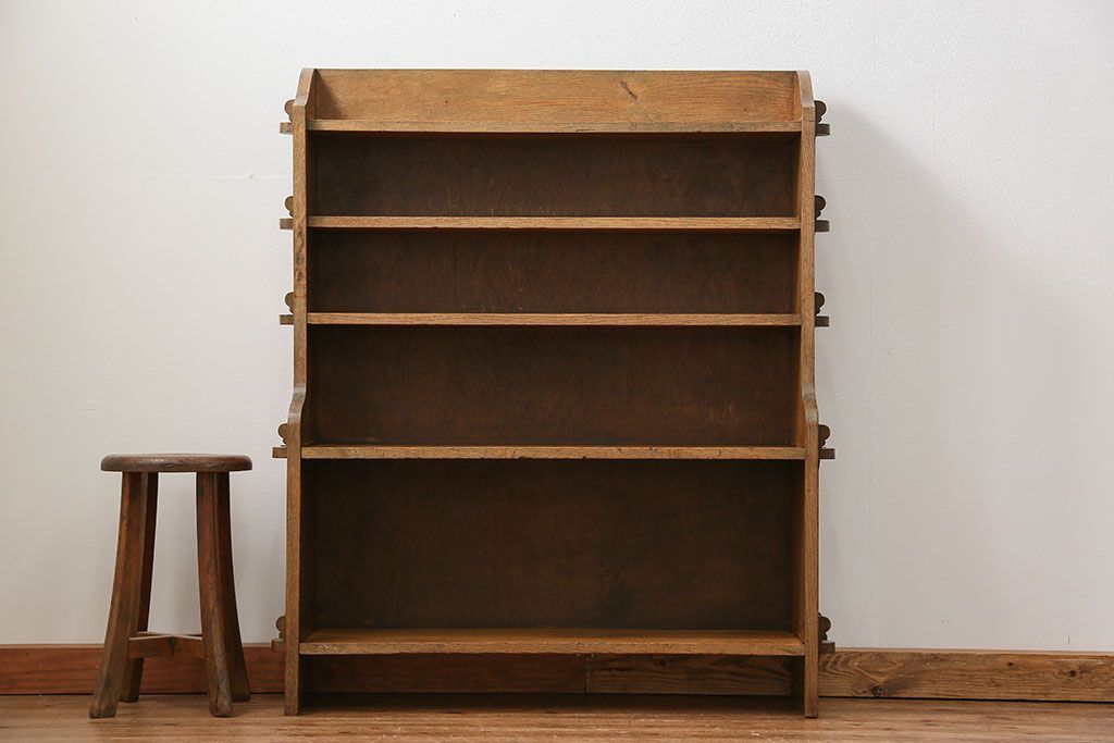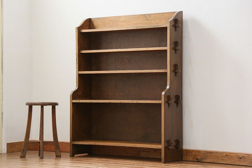 アンティーク家具 イギリスアンティーク オーク材の頑丈なブックシェルフ(本棚)