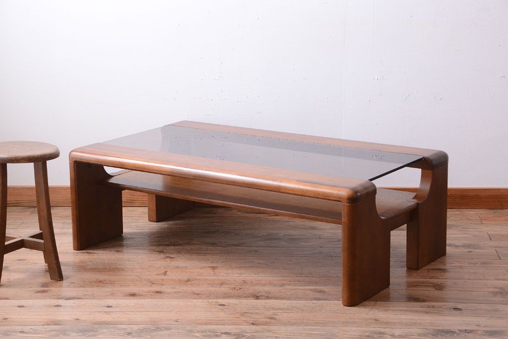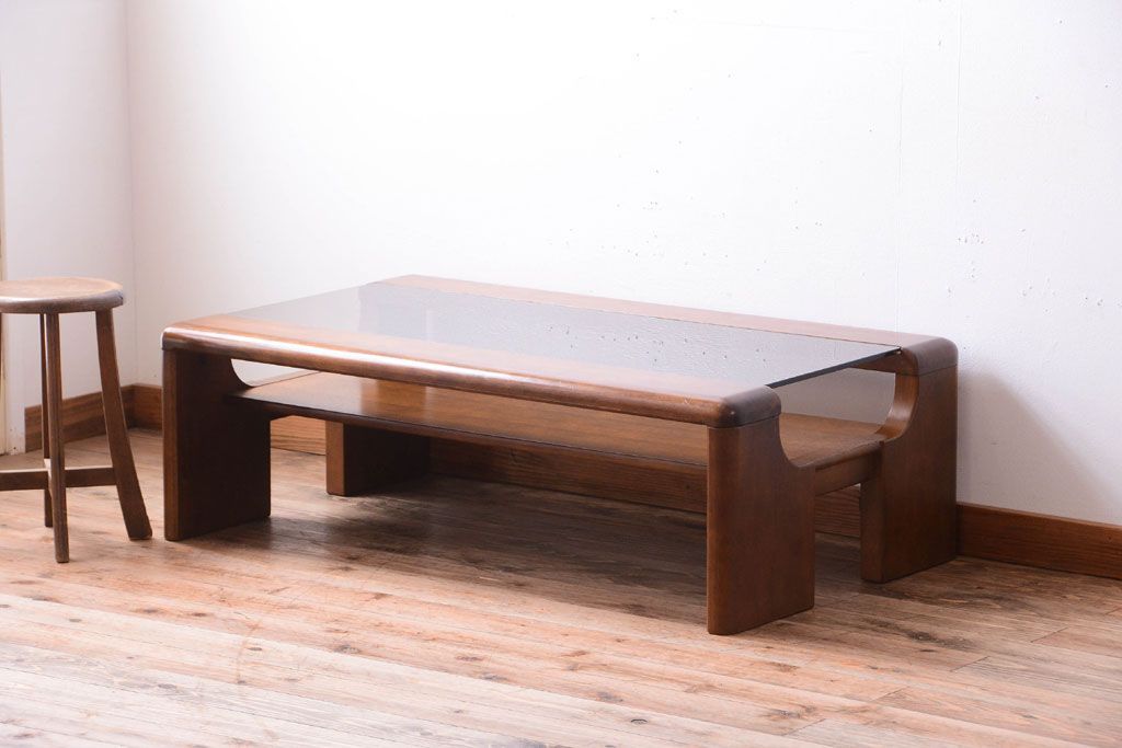 ヴィンテージ家具 maruni(マル二木工) ビンテージ品 ガラス天板座卓(センターテーブル)