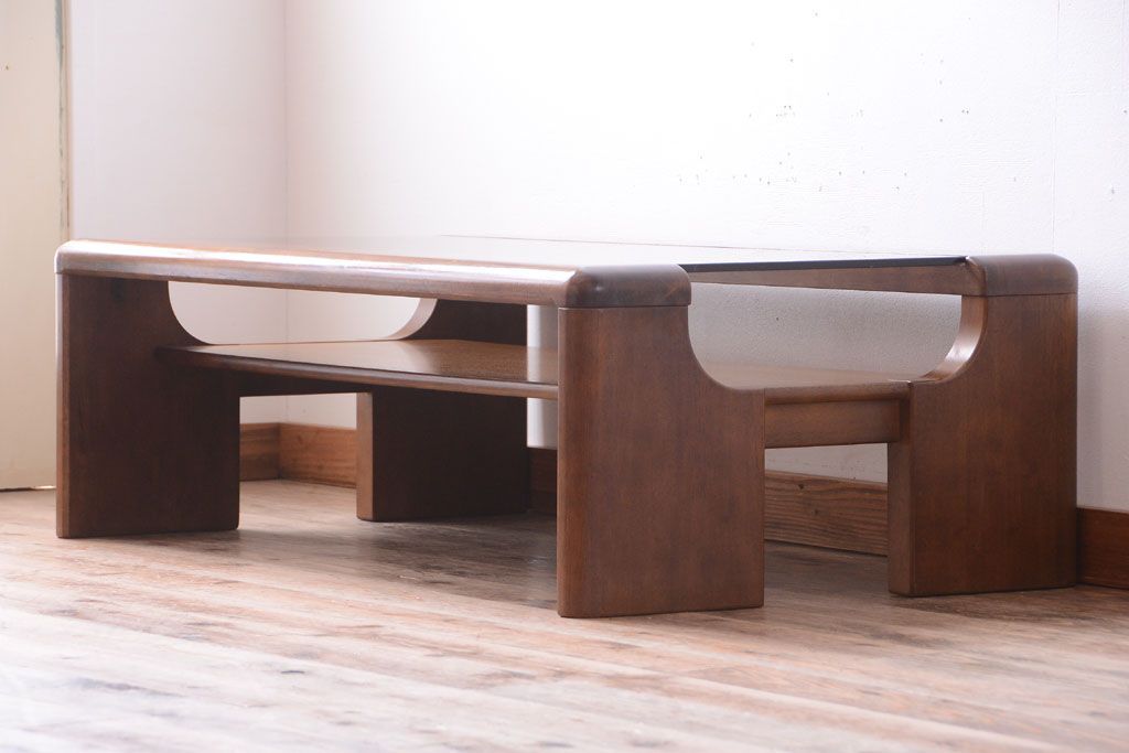 maruni(マル二木工) ビンテージ品 ガラス天板座卓(センターテーブル)です。