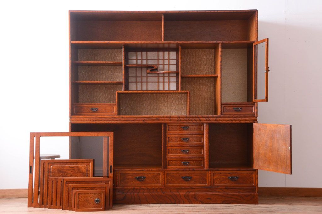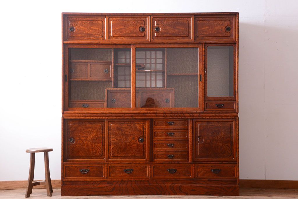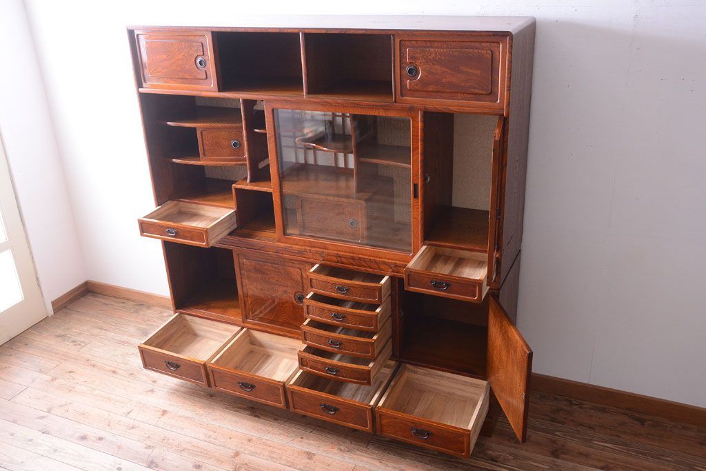 中古 民芸家具 前面欅材!高級重ね茶箪笥
