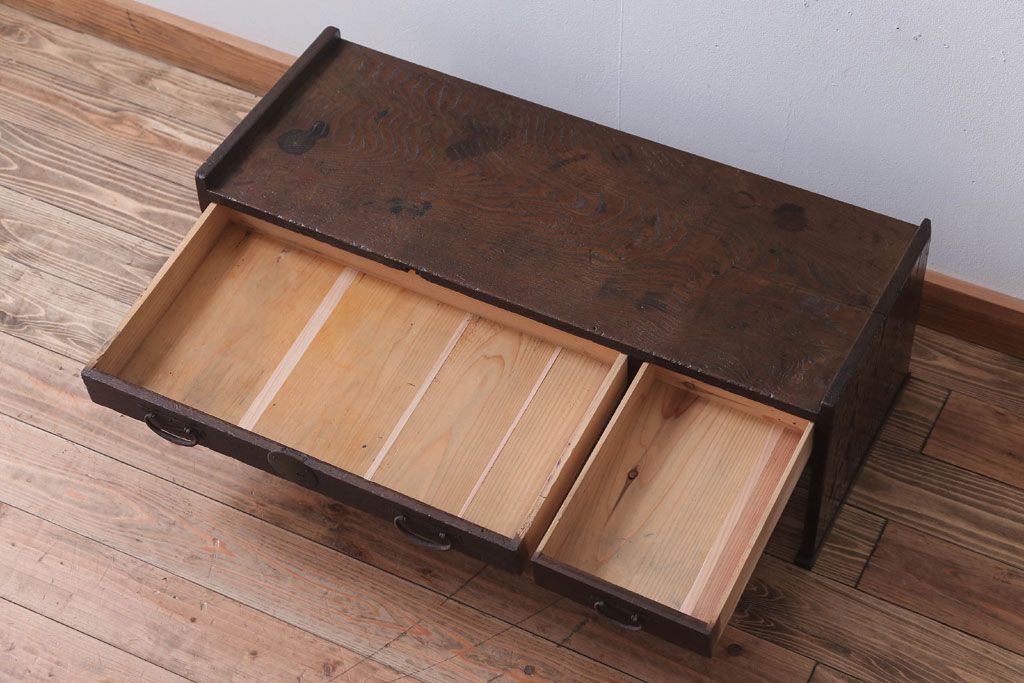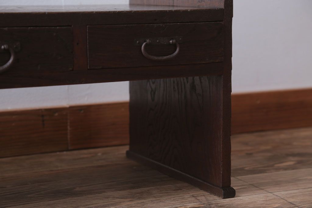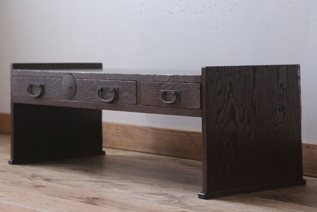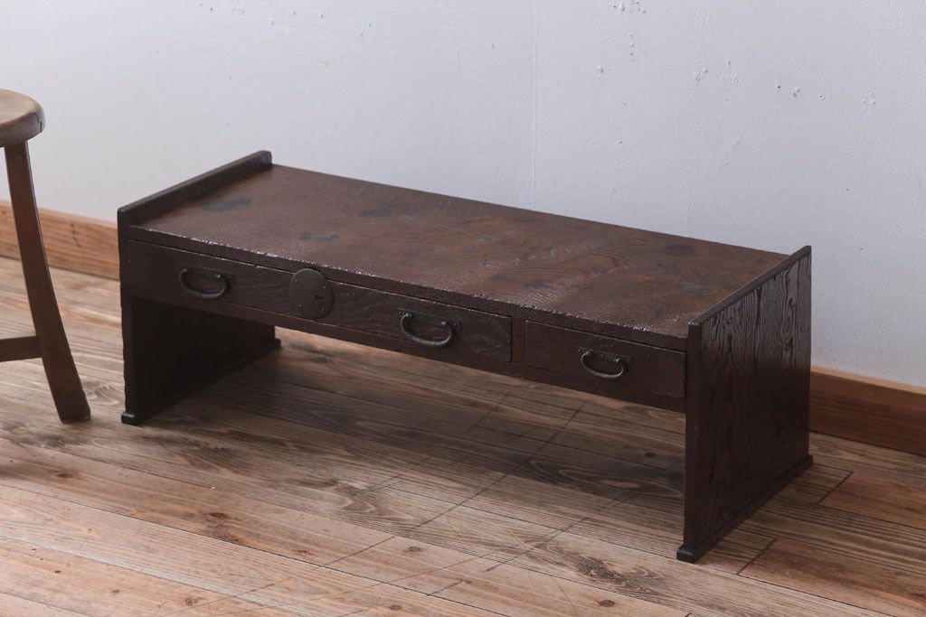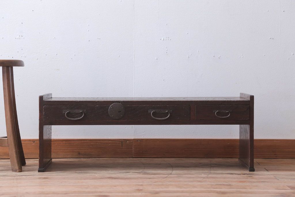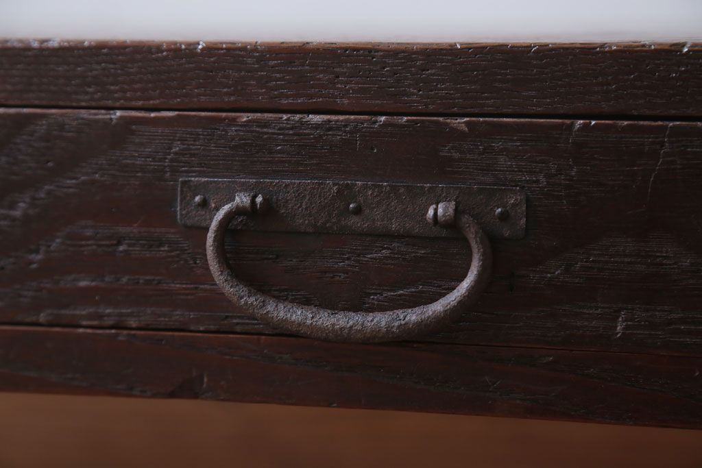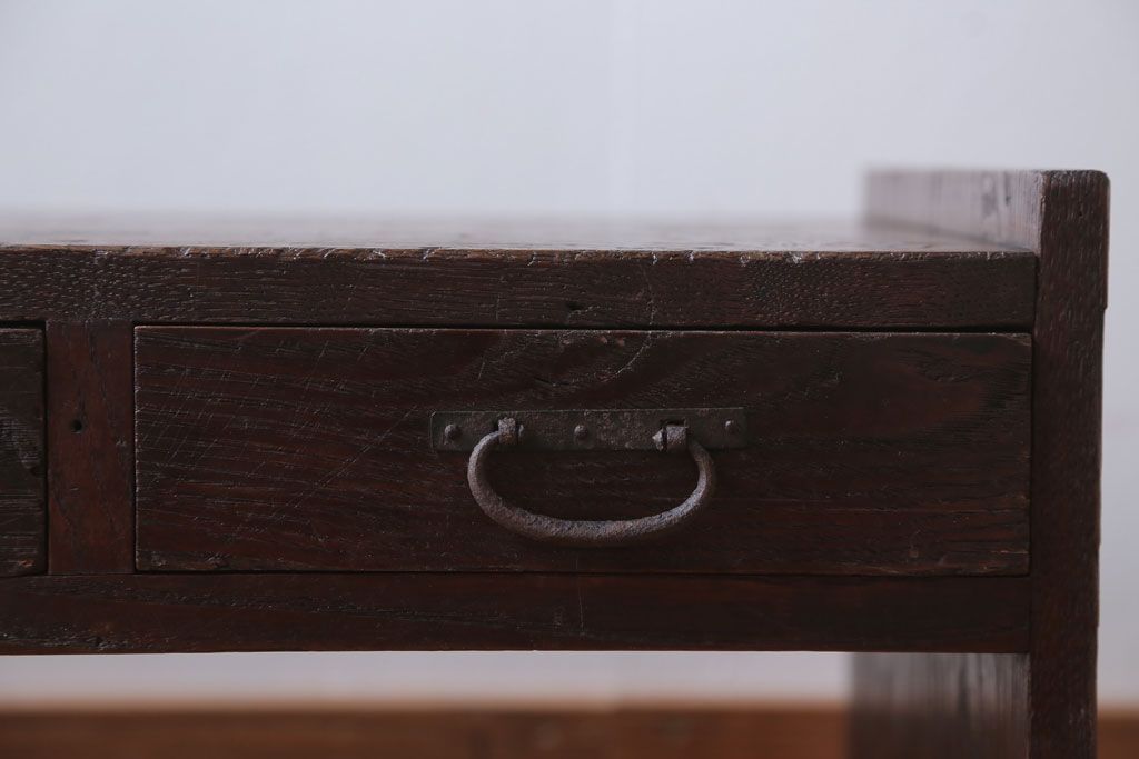 アンティーク家具 古民具・骨董 丸金具付き!古い栗材のアンティーク文机