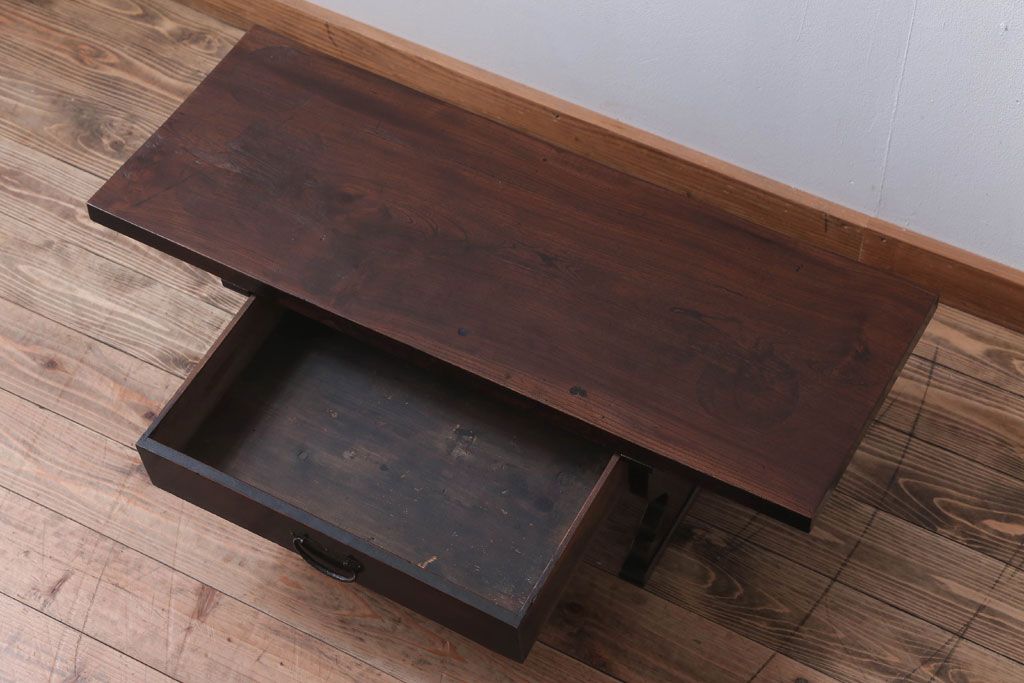 アンティーク家具 古民具・骨董 引き出し付き!古い欅材のアンティーク文机
