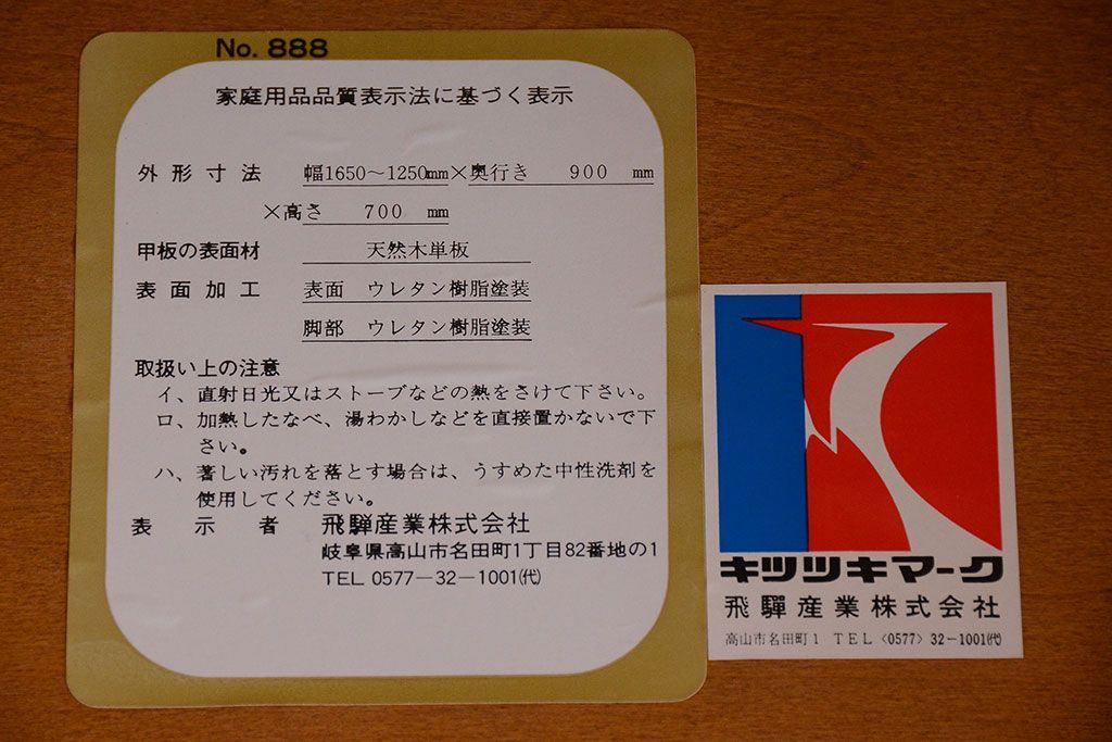 中古 飛騨産業 キツツキマーク 穂高 エクステンションダイニングテーブル