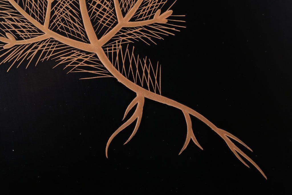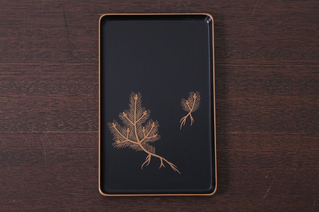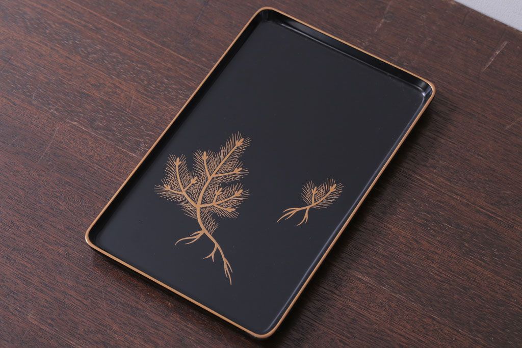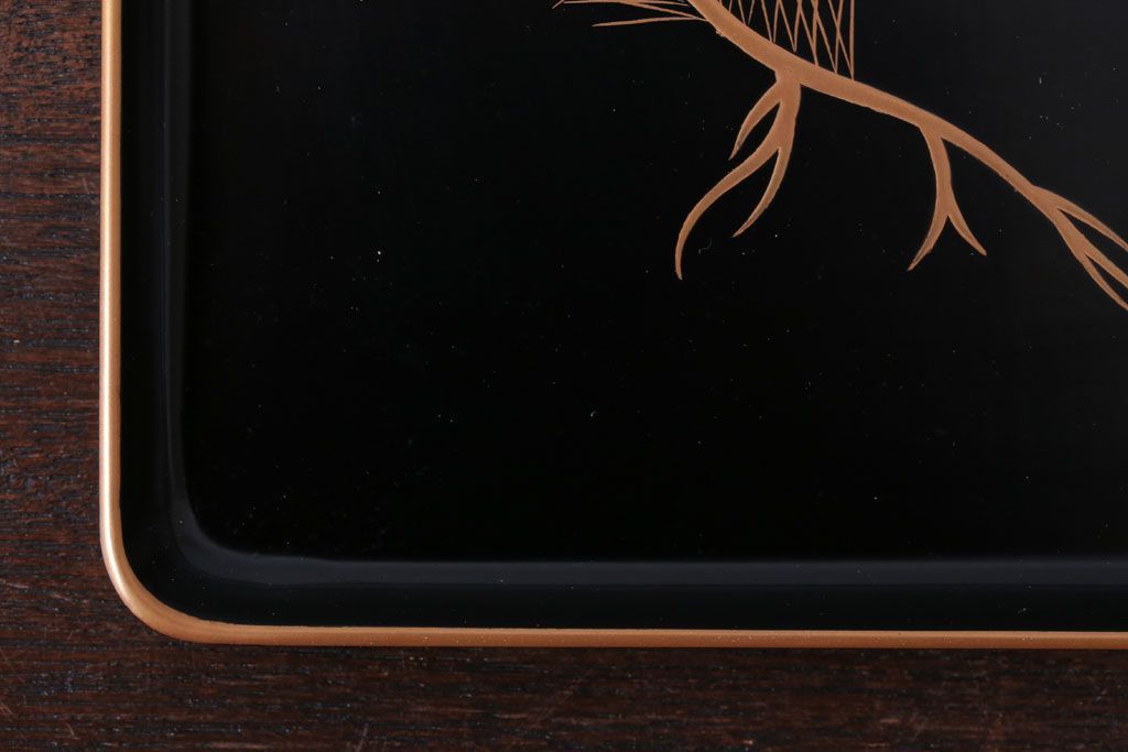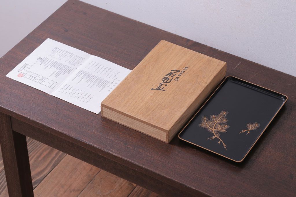 アンティーク雑貨 尚涛済作 若松蒔絵名刺盆(金蒔絵・漆器)