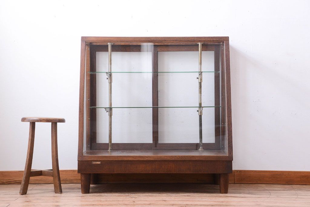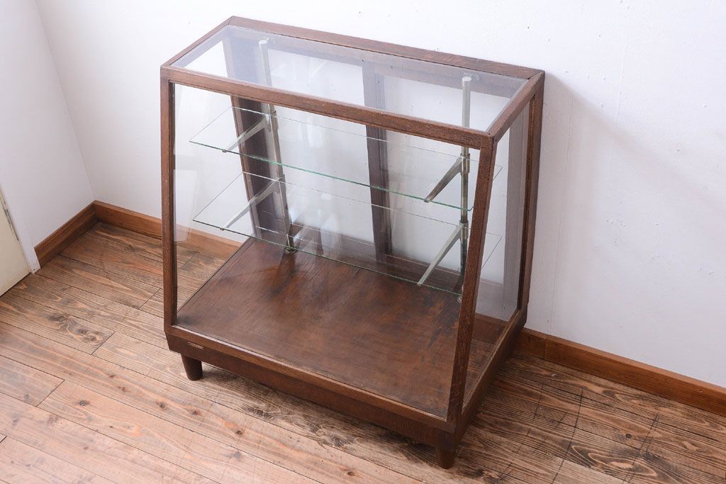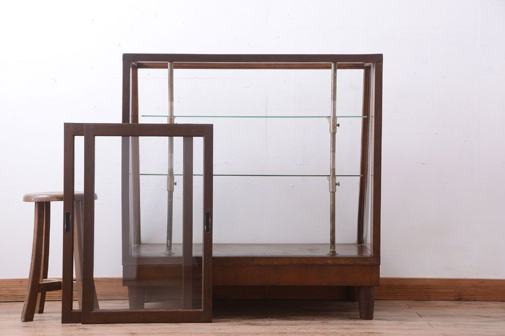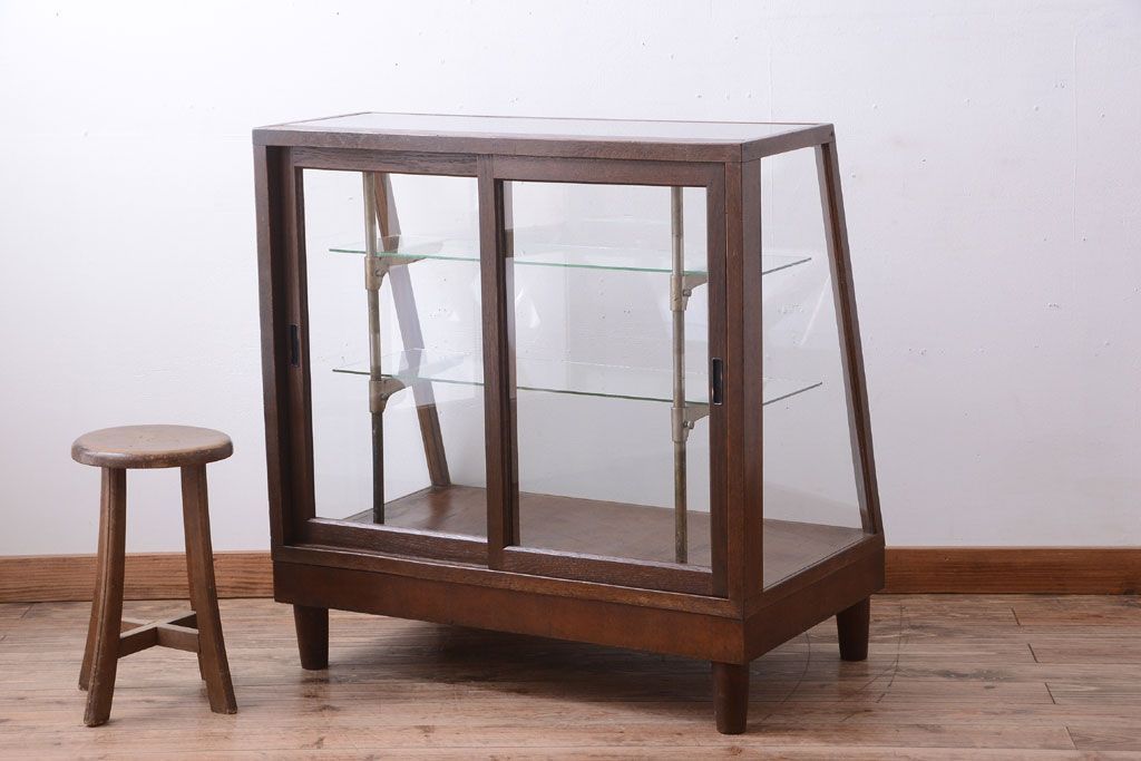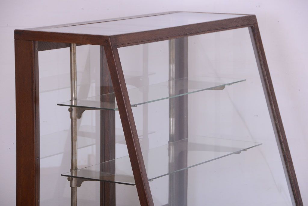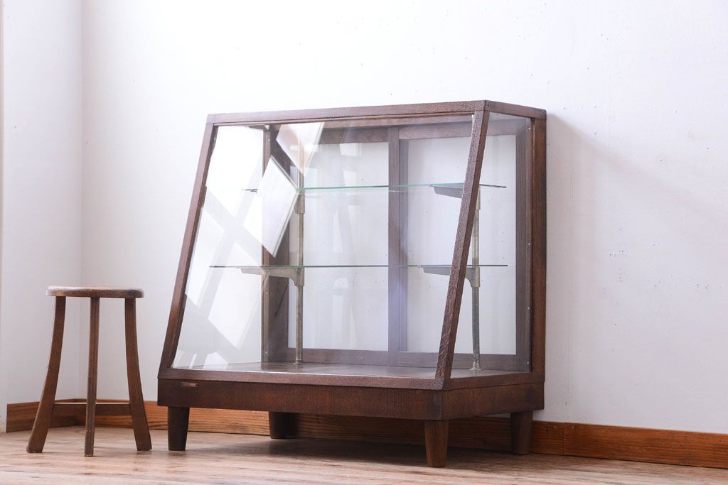 レトロ家具 和製アンティーク 古い木のレトロな台形型ガラスケース(2)