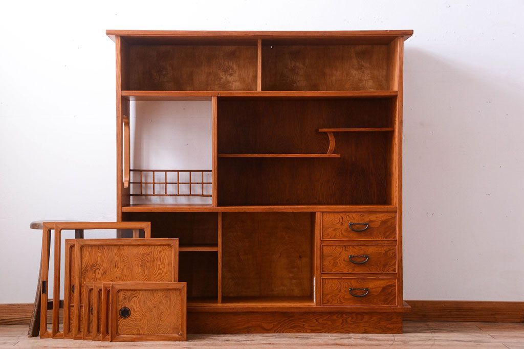 中古 民芸家具 屋久杉製の上品な木味戸棚(飾り棚・収納棚)