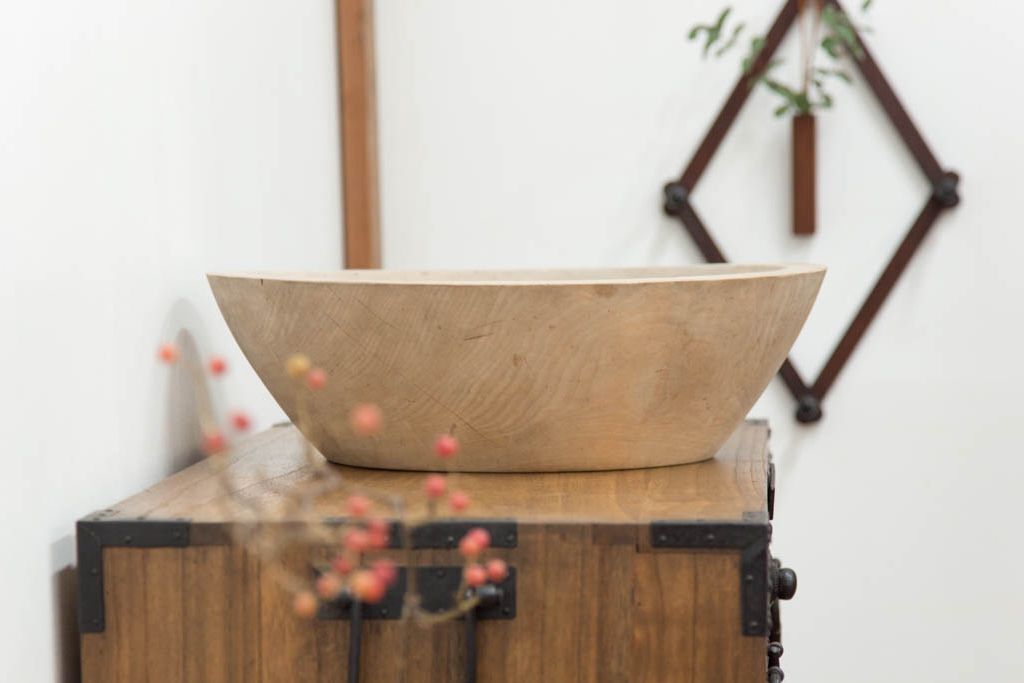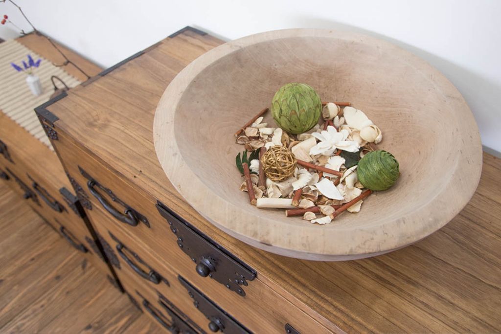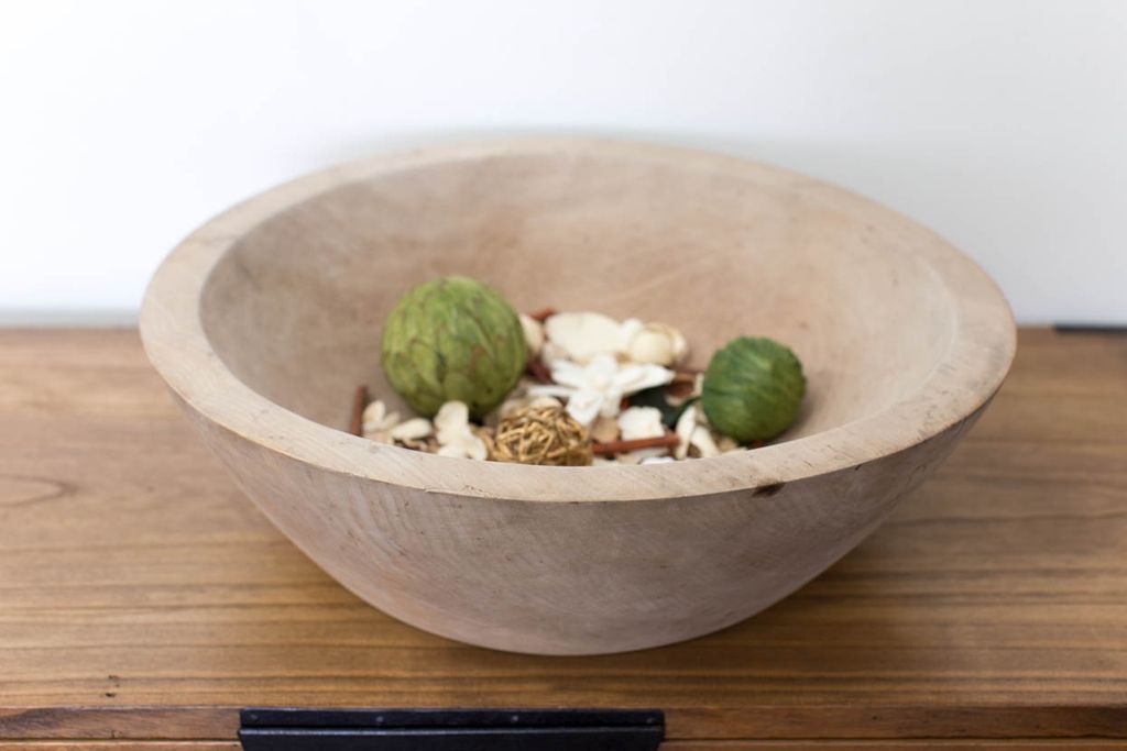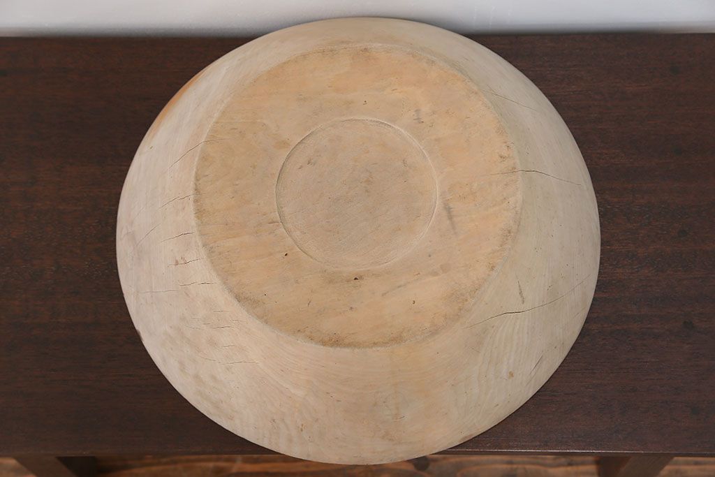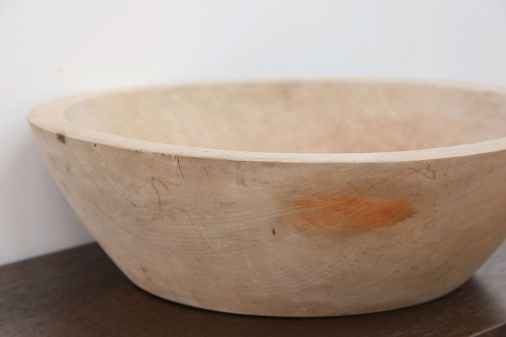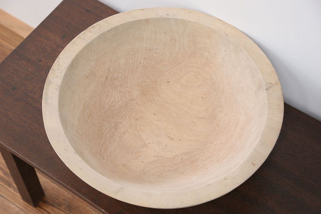アンティーク雑貨 古民具・骨董 古い木味の大きなこね鉢(ボール・木鉢)