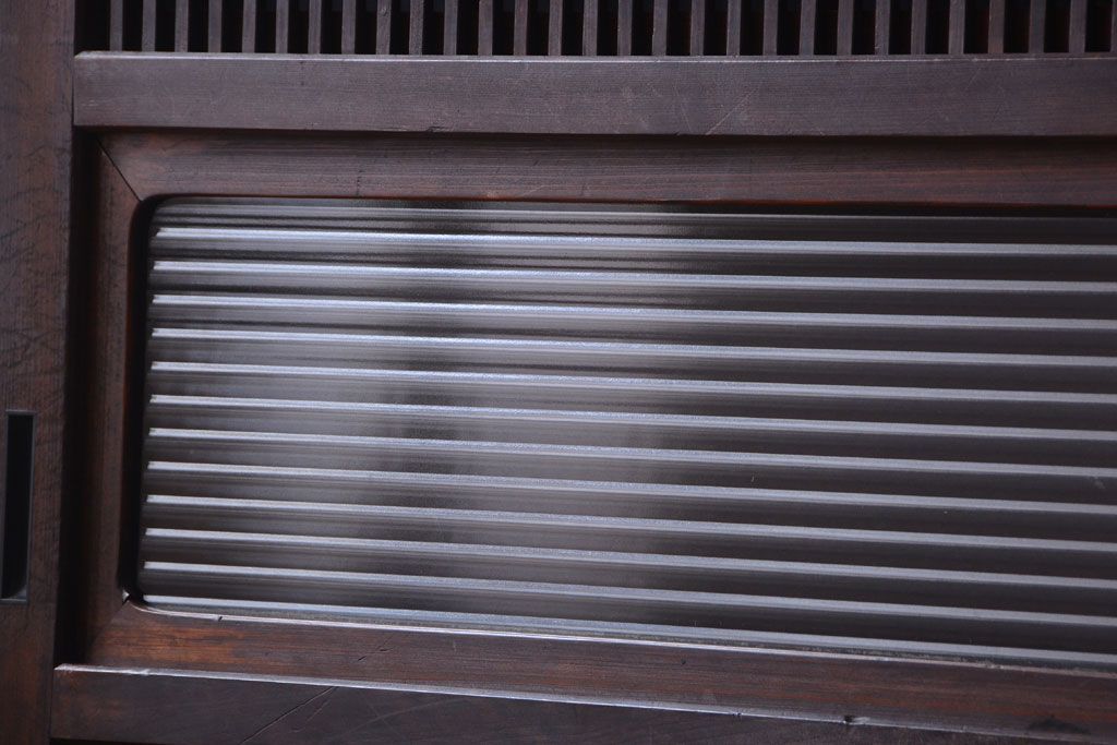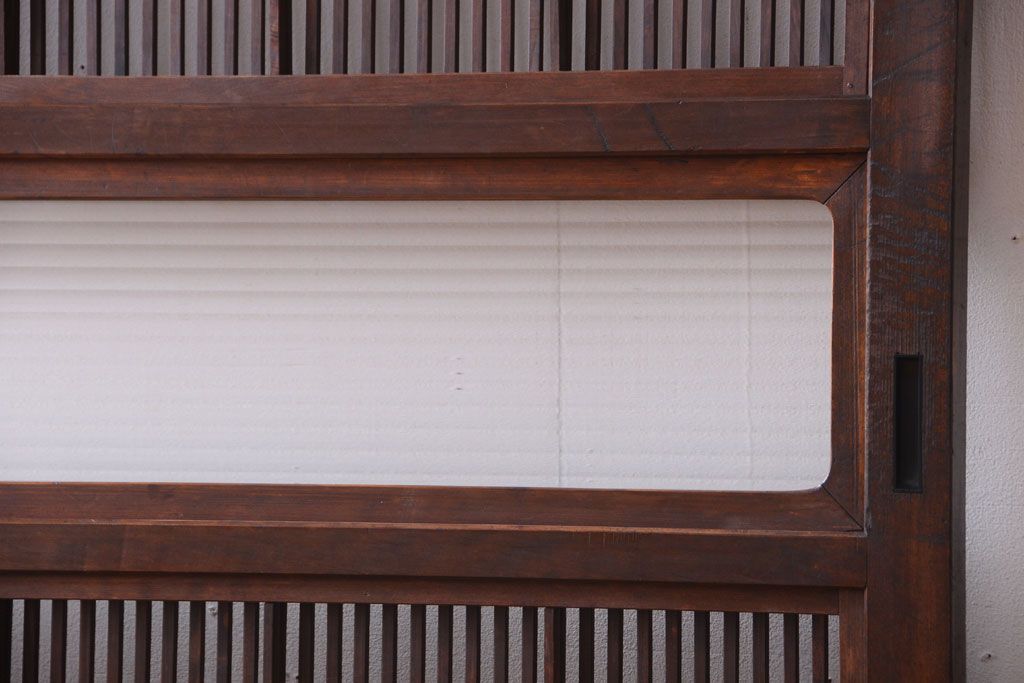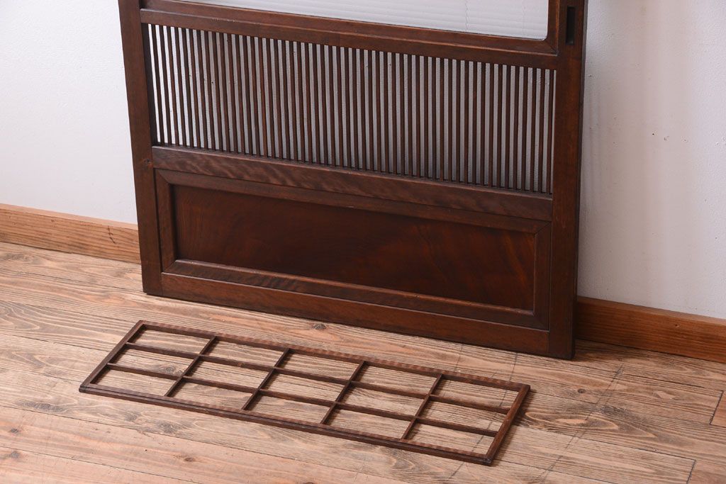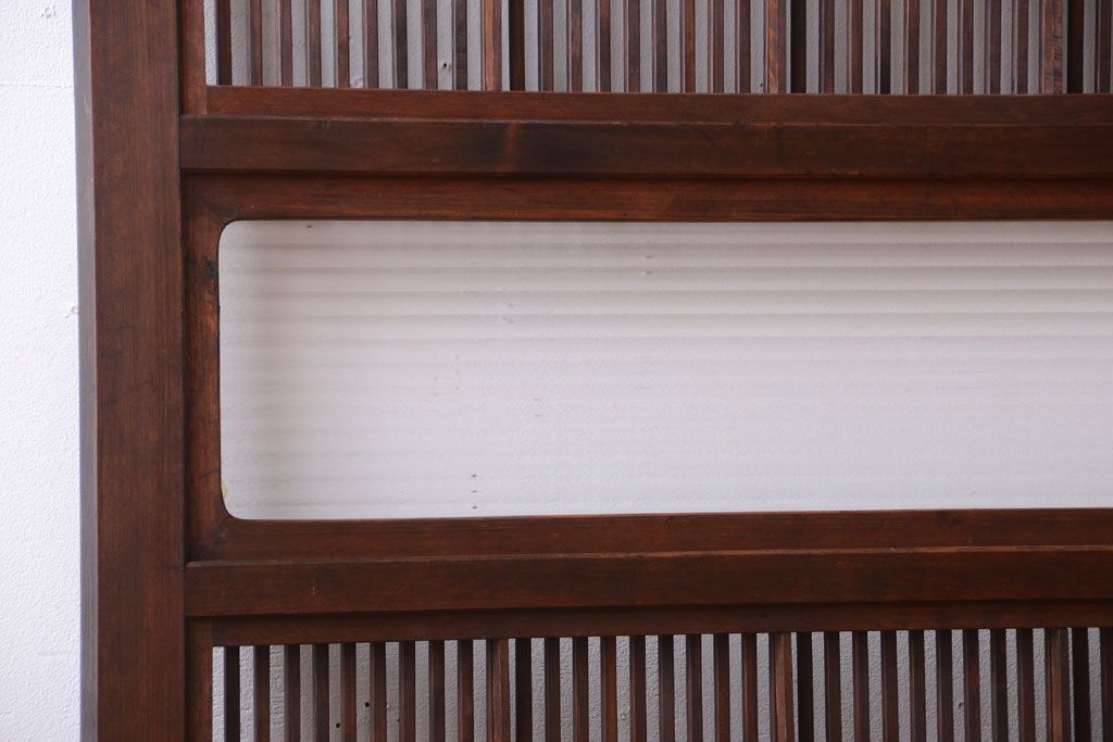 古民具・骨董 裏障子付き!モールガラス帯のアンティーク格子戸です。